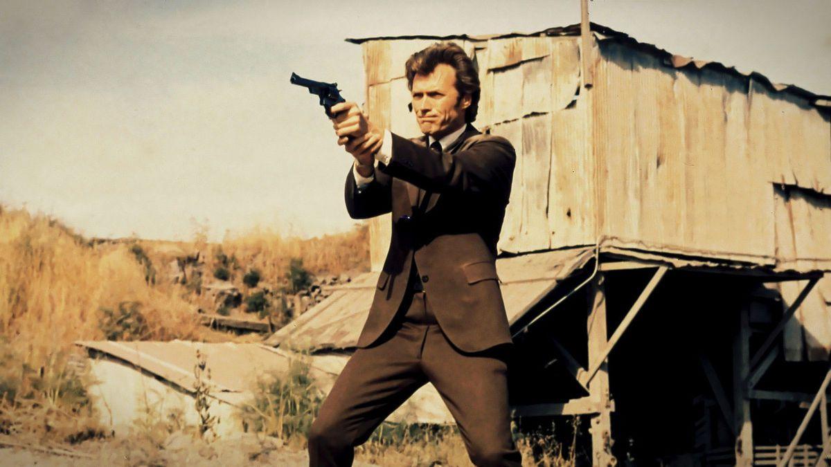 In less than two minutes, you have Peeping Tom–ish first-person handheld perspective, those staccato cuts as the lights hit the football field, Lalo Schifrin’s tittering score, the exaggerated perspective on Harry’s Magnum firing at the perp, a close-up on Robinson’s shrieking face, and that final tailing helicopter shot pulling far away from the field, which has been ripped off thousands of times. Right before that moment, Harry looms large over the criminal, a simple representation of Dirty Harry’s answer to the question of how to defeat evil: without restriction or control, at any cost. Harry Callahan—leaping from bridges onto buses, firing at criminals from a great distance, sparring with evil and bureaucracy—is the personification of an ugly American, but also an avenging angel. Dirty Harry is brutally, philosophically unwoke—call him a relic, a warning, an iconoclast, a monster, a hero. Won’t matter much to him, which is the point—thrashing contradiction masquerading as objective truth. It’s the subtext in Clint’s life and his persona on-screen: Justice may have a toll, but that toll is rarely more important than justice itself. But if we compare him to the other character he created with Siegel in 1971, maybe we can see an alternate history of Eastwood. A guy with a less defensible vulgarity.