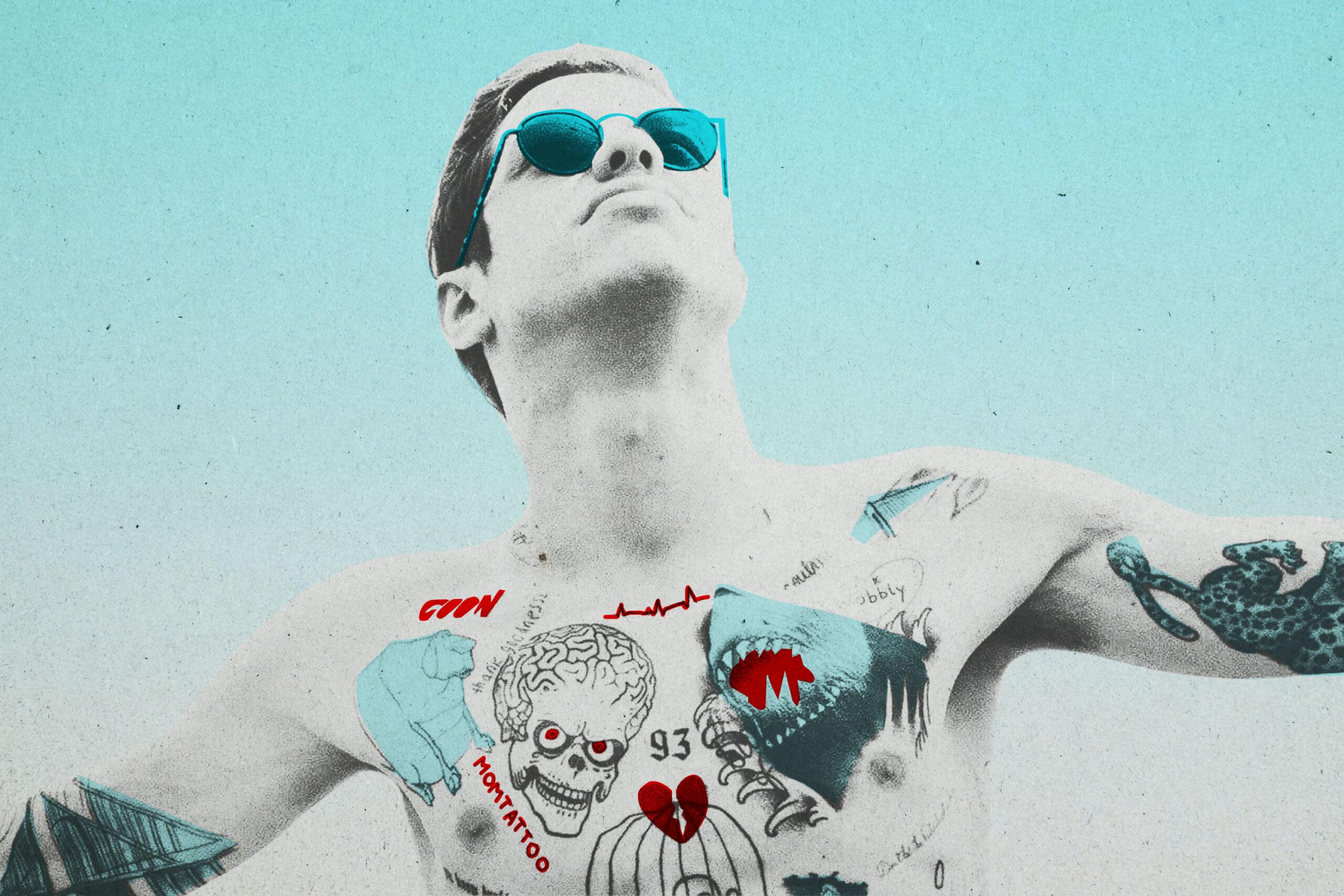 And what a character that is, both on the surface and at heart! Davidson’s SpongeBob sweatpants–inflected sartorial “scumbro” abandon makes him almost impossible to ignore. (One Man Repeller blogger who sought to emulate it described “an avant-garde palette of soft wisteria purples, Denver Nuggets blues, and hot flamingo pinks.”) Underneath those clothes lie additional art and armor. Pick an image, any image—Ruth Bader Ginsburg; Stewie from Family Guy; the Bada Bing logo from The Sopranos; the Snapchat ghost—and Davidson probably has it tattooed on his torso. Pick a famous person, any famous person—Cindy Crawford, Larry David, Andie MacDowell—and there’s an excellent chance their gorgeous daughter has seen these markings up close. Davidson’s heady relationship with Grande made him the poster boy for a new three-letter combination that didn’t spell out his dad’s initials this time, but still had to do with Pete’s genitalia: BDE, popular shorthand for “big dick energy.”