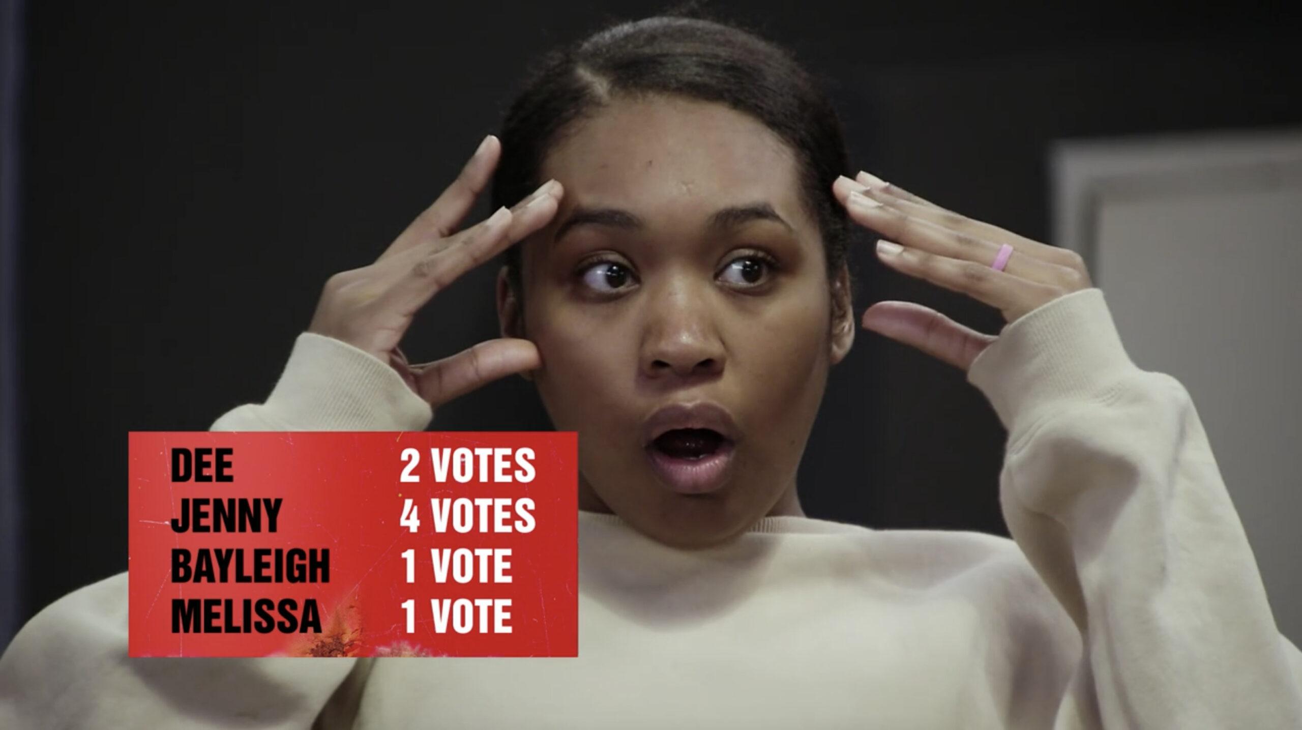 That then leads to a whole dustup between Melissa and the members of her alliance—Jenny, Johnny Bananas, and Kyle—who rightly point out that Melissa inadvertently sent Jenny in by wasting her vote on Bayleigh. Melissa gets very teary-eyed. Jenny cries a lot. A heart-to-heart is required. It’s really tremendous TV; something I’ve been craving all season. And if you don’t believe me, just take Bayleigh’s facial expressions as proof.