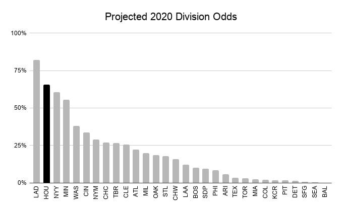 Even amid the likely increased randomness of this season’s standings, the Astros are in a better position than almost any other team to win. As of Tuesday afternoon, the projections from FanGraphs and Baseball Prospectus average out to peg the club at 35.8 wins, tied with the Yankees for the second most in the majors. Only the Dodgers have better projected odds to win their division.