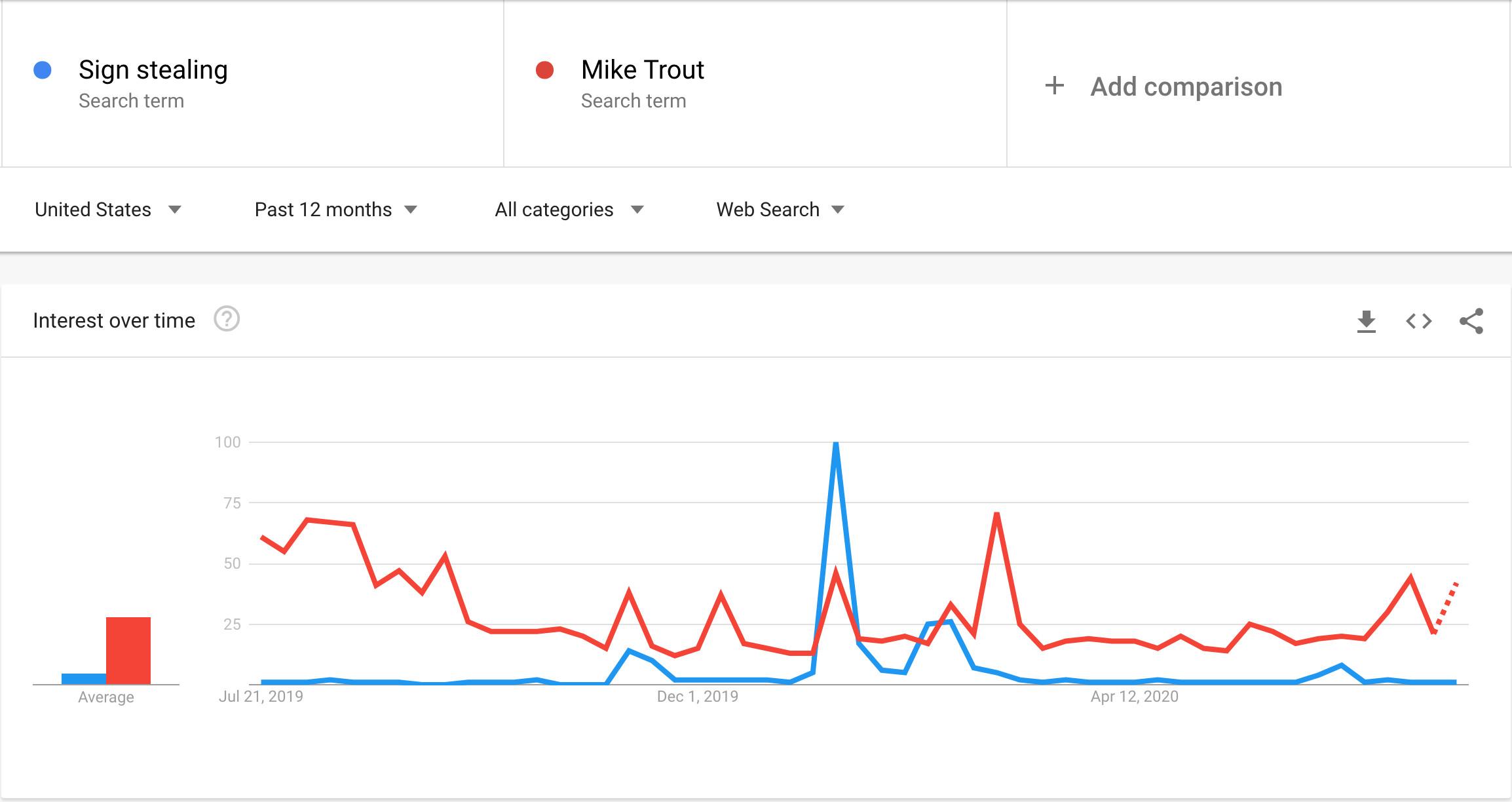 And then the sport stopped in place, and the story faded. Look at that Google Trends graph again; the “sign stealing” line is almost flat since March. It wasn’t just that there were no games and no Astros players to boo; the existential question their cheating inspired about the sport’s fairness gave way to a host of different existential questions that were simultaneously more pressing and wider-reaching: about labor, about the ethics and logistics of health and safety measures, about the sport’s financial foundation.