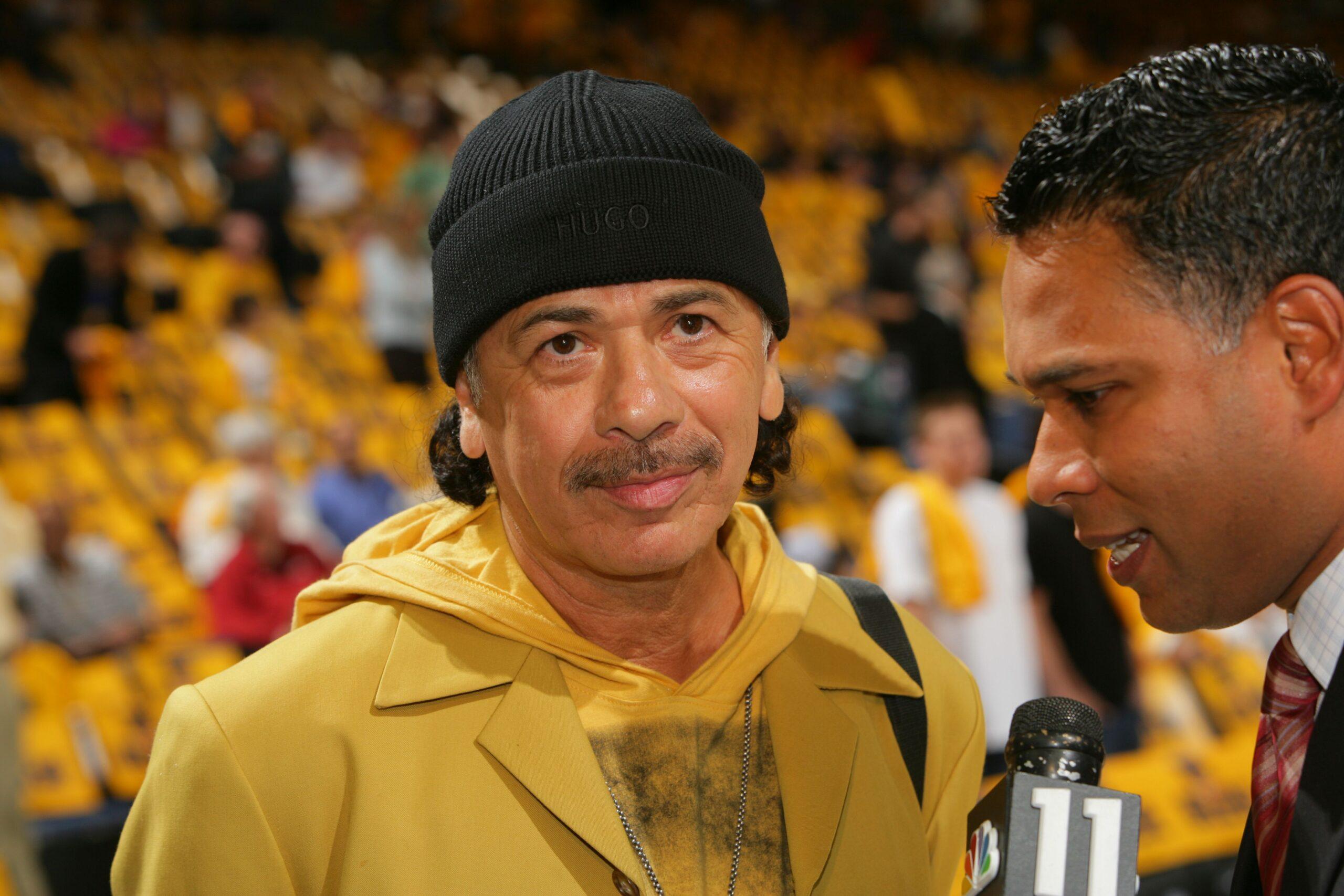 Santana is a Bay Area legend, and responsible for at least one great moment in Warriors history. (Two if you count the time rock ’n’ roll artist David Garibaldi painted a real-time portrait of him at halftime to the strains of “Oye Como Va.”) He’s also a die-hard fan. How do we know? Here he is at Game 4: