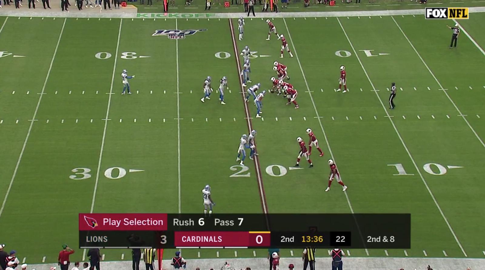 With more talent at receiver, Kingsbury may be tempted to go back to his four-wide looks at a higher clip in 2020. Even if he doesn’t, I’d expect the Cardinals to continue to spread out the field with empty-backfield looks like this one, which gets all the team’s playmakers in space: