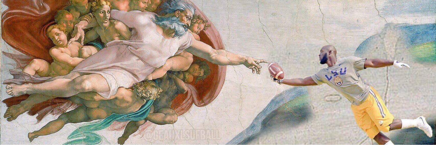 Leonard Fournette’s Twitter background shows him Photoshopped onto the ceiling of the Sistine Chapel.