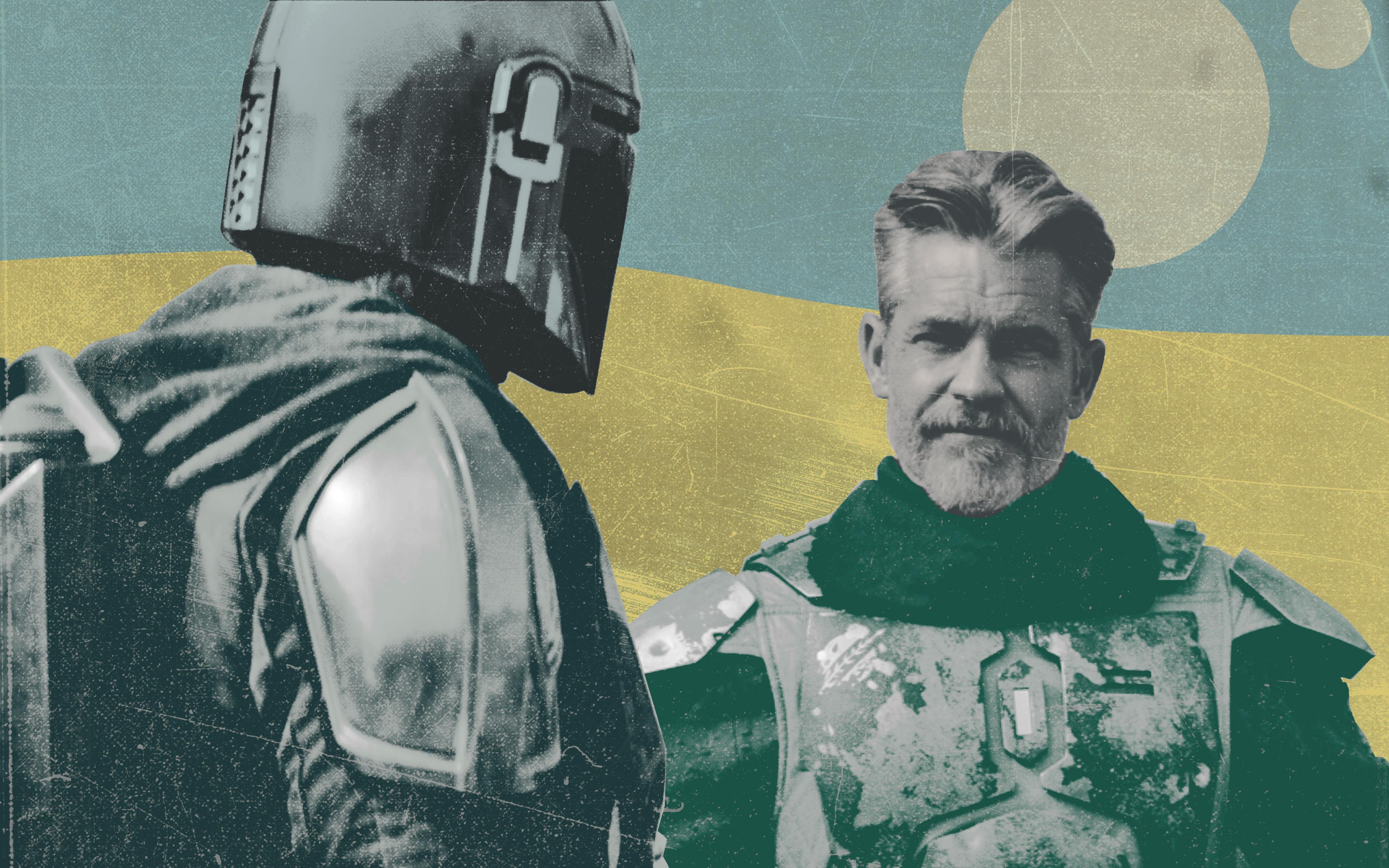 Vanth is new to the screen, but not new to Star Wars. The character debuted in Aftermath, the 2015 novel that marked the first official foray into the post–Return of the Jedi timeline after Disney de-canonized the old expanded universe in 2014. Vanth’s on-screen backstory isn’t precisely the same as his book backstory, but the broad strokes are similar. In the show, he flees from Mos Pelgo when the Mining Collective takes over the town and wanders in the desert until he’s picked up by a sandcrawler, where he finds Fett’s armor and trades some silicax crystals to make it his own. Equipped with the iconic gear, he returns to the town, chases out its occupiers, and becomes the de facto mayor of Mos Pelgo (renamed “Freetown” in the Aftermath trilogy). On TV, the townspeople call him “marshal,” a title that’s familiar for Olyphant.
