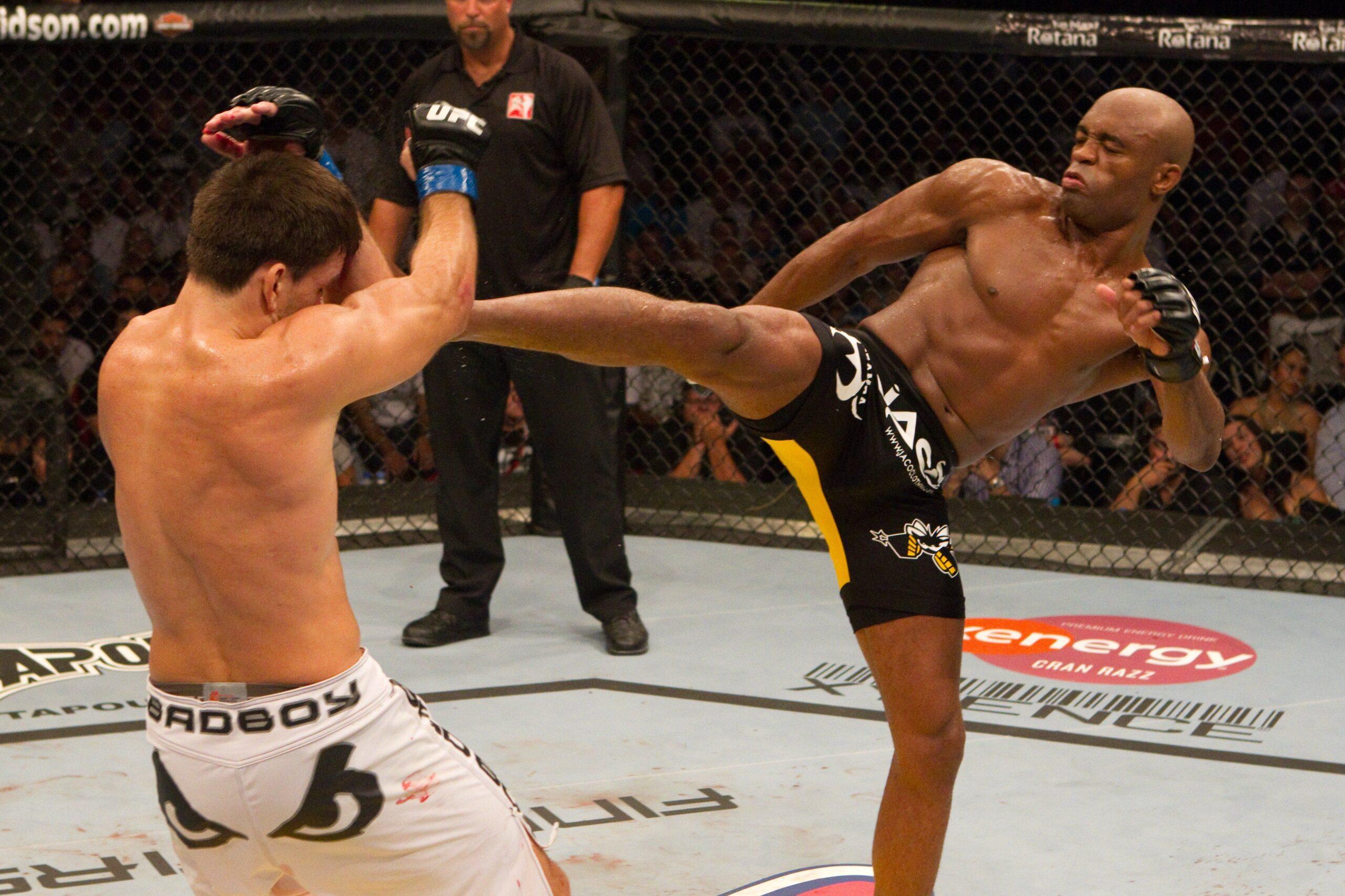 GOAT cons: Silva was busted for anabolic steroids in 2015 and blamed it on some sexual enhancement pills he got from a friend who’d been to Thailand (the infamous “dick pills” episode). He has lost just about every fight since then, and the fights against Weidman—getting knocked out while goofing around the first time and shattering his fibula in the second—are hard to forget. In fact, the UFC plays the Weidman knockout on every generic promo.