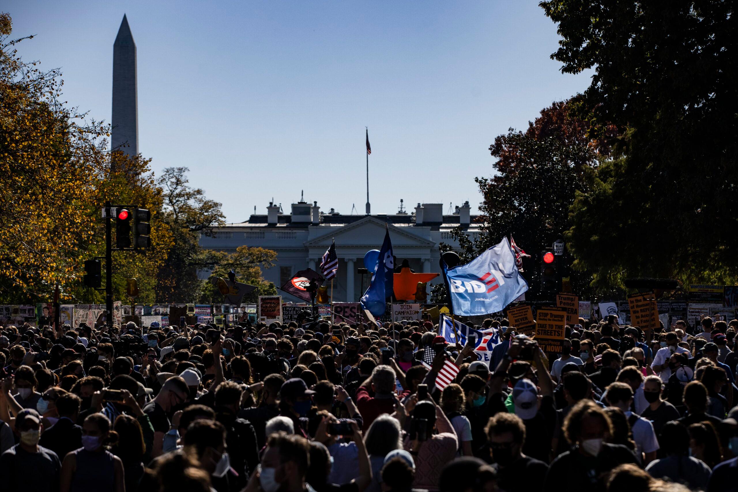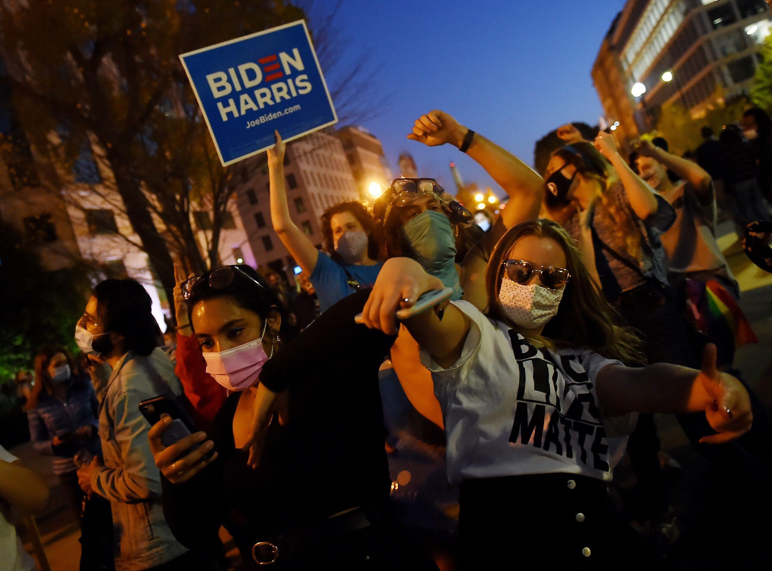 This was not that. This was a celebration. On Saturday, a man named Jesse wearing two medical masks triumphantly waved a blue “Biden-Harris: 2020” flag in the autumn air. He decided to join the festivities after his family called and told him to turn on the TV. “[They] said that Black Lives Matter Plaza looks like the happiest place on Earth.”