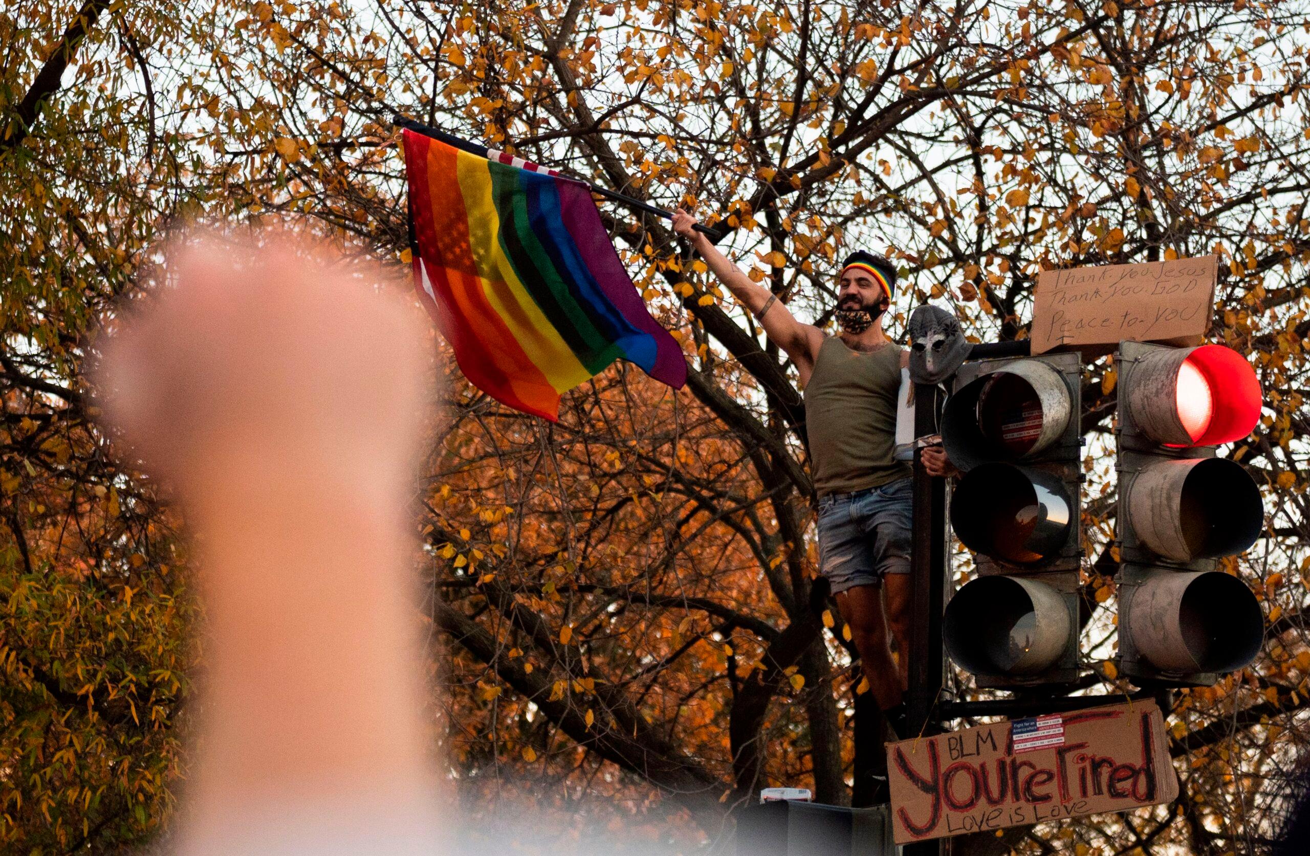Half a block from St. John’s Episcopal, site of the infamous photo op, Stephan, a Miami transplant who recently moved to D.C., watched the jubilant passers-by. He said that when the election returns began to trickle in on Tuesday, he was saddened to see that Trump still has so much support. But as Biden took a commanding lead in both the popular vote and the electoral college, his faith was renewed. “It feels better than when Obama was elected, honestly,” he says, his thick black beard poking out from beneath his camouflage mask.