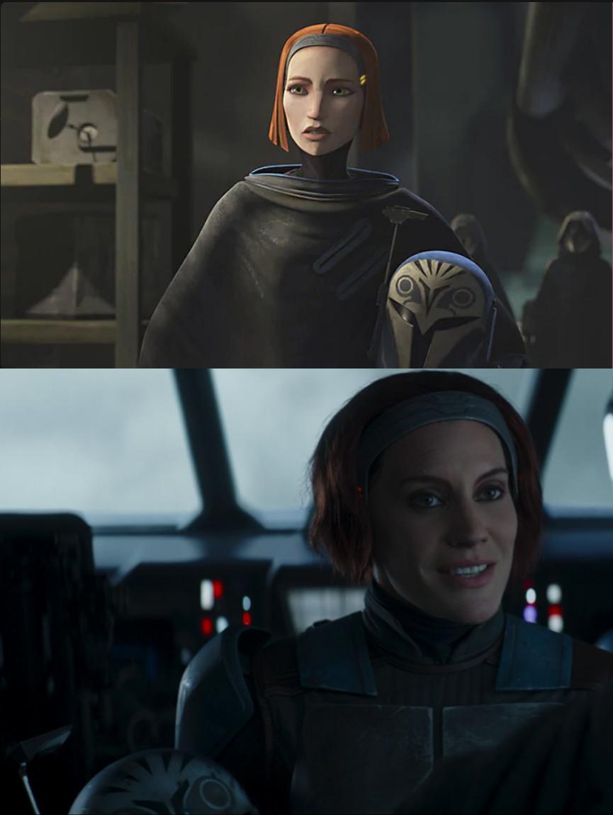 At this point in the timeline—five years after Return of the Jedi— the 40-year-old Sackhoff is a tad young to play Bo-Katan, who should probably be in her 50s. (We don’t know exactly when she was born, but we do know that she joined Death Watch as a full-grown warrior about 30 years before the events of The Mandalorian.) Then again, the 59-year-old Temuera Morrison is a tad old to play the 41-year-old Fett. As with book character Cobb Vanth, whose established backstory was slightly contradicted (or at least elided) when he made his Mandalorian debut in Chapter 9, the series isn’t letting minor canonical nitpicks stand in the way of making The Mandalorian a force that binds this galaxy together.