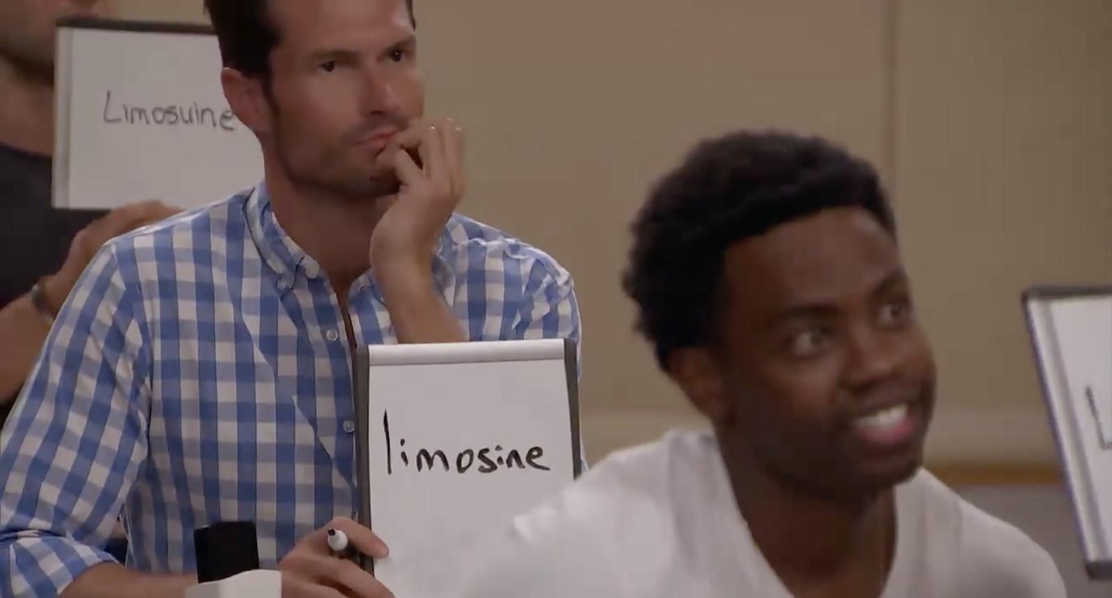 (That’s Ed in the way back spelling it “limosuine.” Later it’s revealed by Bennett that Ed got a perfect 800 on the math portion of SATs, which reveals that Bennett and Ed, who are both 36 years old, had a conversation at some point about how they scored on a standardized test they took when they were 17.)