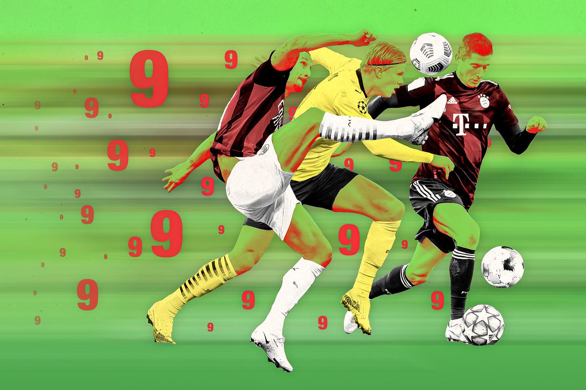 For several years now, with a few notable exceptions, the wide forward (say, PSG’s Kylian Mbappé) or the second striker (more recently, Atlético Madrid’s João Félix) has been the glamour position, with the center forward—say, Manchester City’s Gabriel Jesus or Chelsea’s Olivier Giroud—doing the unexciting work to support them. Yet in the last few weeks and months—thanks to the assorted swashbuckling of AC Milan’s Zlatan Ibrahimović, Bayern Munich’s Robert Lewandowski, Borussia Dortmund’s Erling Haaland, and Manchester United’s Edinson Cavani—we have seen a resurgence of the bona fide no. 9. However briefly this may last, and thanks to the five key characteristics of this type of player, the glamour is back.