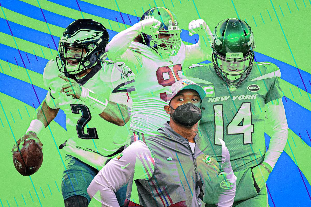 The Eagles’ offensive line is disastrous—they’ve had a lot of injuries, leading to rugby convert Jordan Mailata playing left tackle and Jason Peters playing with a broken toe (poorly). So of course Hurts—who ran for more yards in his senior season at Oklahoma (1,298) than Wentz did in his entire college career at NDSU (1,028 yards)—is better suited to play when there are rushers in the backfield on every play. He can actually avoid getting tackled, while Wentz is historically good at getting sacked and fumbling.
