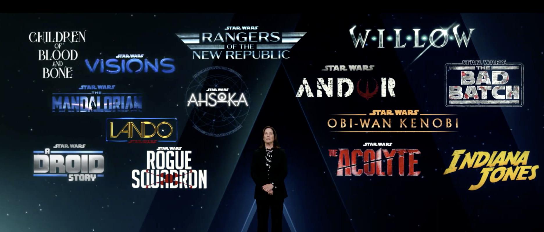At Thursday’s Disney Investor Day blowout, Lucasfilm lifted the lid on its future contributions to the Mouse’s onslaught of streaming and cinematic releases. At the climax of the Lucasfilm portion of the presentation, Lucasfilm president Kathleen Kennedy stood on a stage like General Hux right before the First Order fired at Starkiller Base, flanked not by officers and stormtroopers but by logos of upcoming projects. Hux fired at five planets at once, but Kennedy let loose an even more multipronged broadside aimed at rival streaming services. Just look at the big board behind her: My god, it’s full of Star Wars.