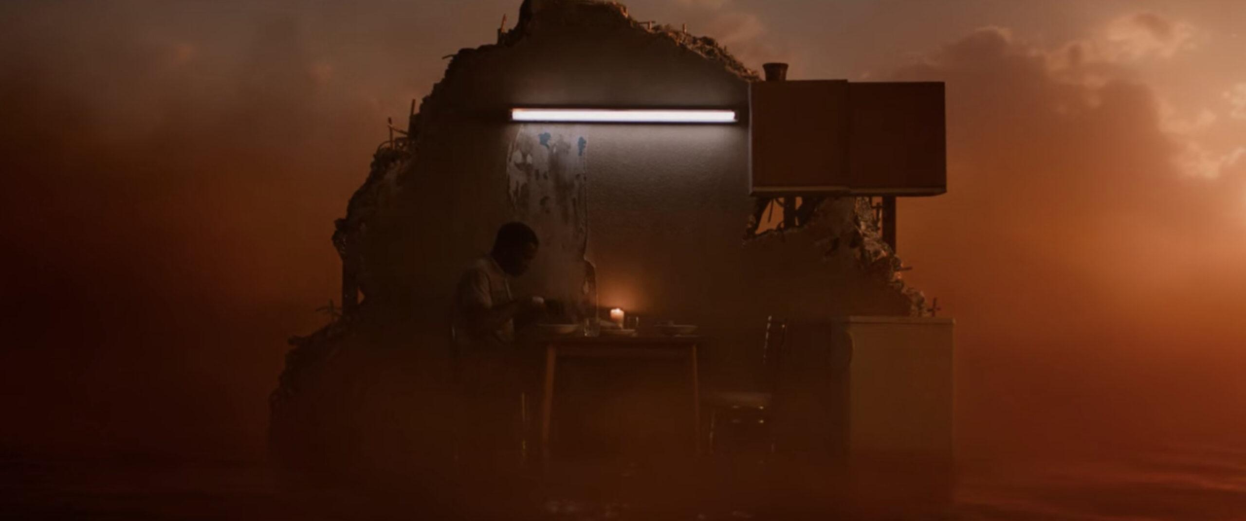 Eating dinner alone in his government-appointed lodgings on the outskirts of London, Sudanese refugee Bol is haunted by a memory of his treacherous overseas passage; as he descends into memory, director Remi Weekes pulls back to show his dining room carved out and adrift under a blood-red sky. Of all the attempts at expressionism in His House, this scene is at once the most visually spectacular and the most affecting, underlining the complicated, contradictory emotions of a character caught between countries. In crafting a parable about a space haunted by its new inhabitants, Weekes indulges several blunt, effective, Candyman-style jump scares; as this scene goes on, he gives us zombie-like monsters rising out of the waters. What stays in the mind’s eye, though, is the distanced scope of the composition—the way it pulls back into a physical and psychological establishing shot. The technique required to achieve such a seamless, surreal illusion is considerable, but what’s impressive is the relationship of image and meaning, and the understanding that stylizing reality can also be a way of heightening it.