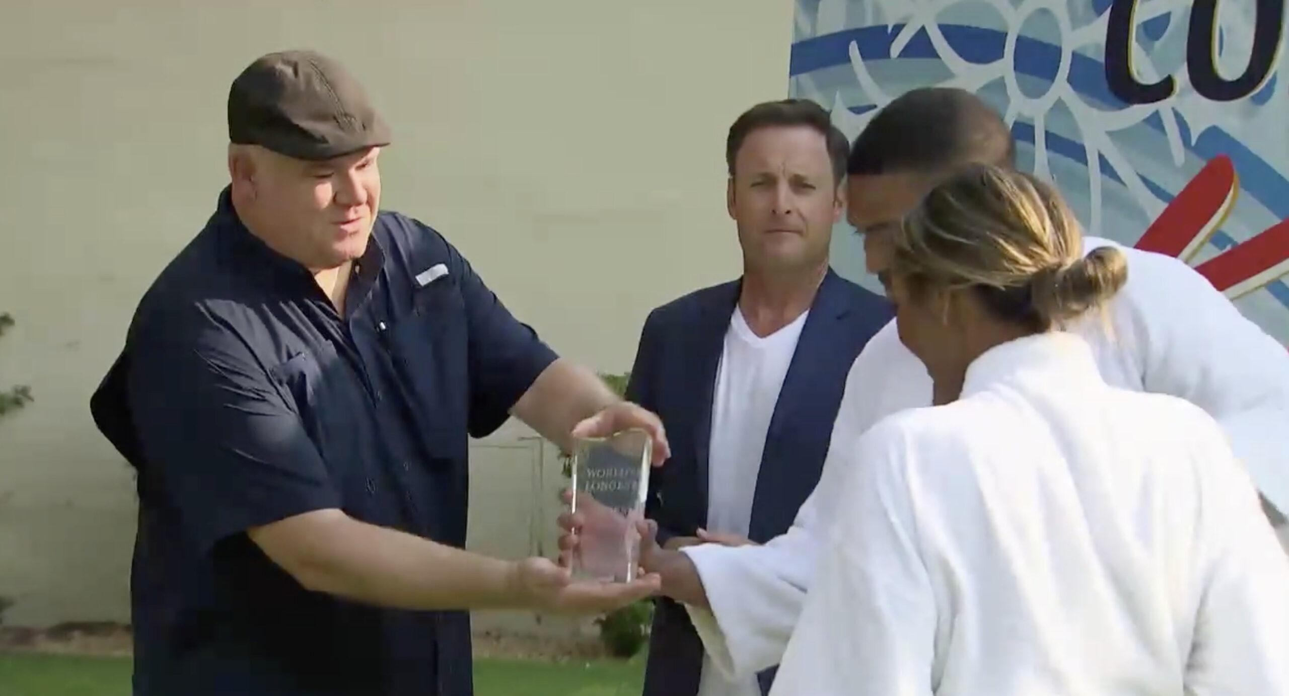 But no Guinness representative was on hand for Ivan and Tayshia—and when they break the record, they are given a clear glass trophy: