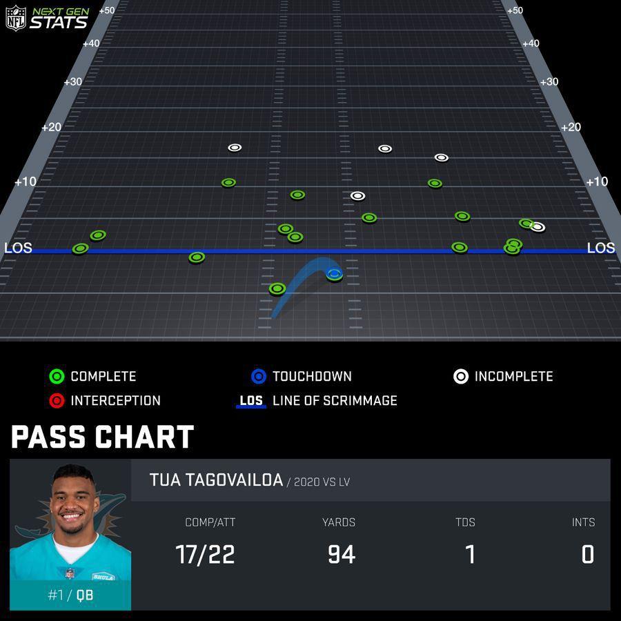 Against the Raiders, Tagovailoa was unable to get much of anything going. The offense turned four first-half possessions into two three-and-outs and two field goals. Then in the third quarter, Tagovailoa got things started with a nine-play, 75-yard touchdown drive. But on each of the following three possessions, the Dolphins offense failed to gain any yards and punted after three plays. Tagovailoa finished with a paltry 94 yards on 22 pass attempts before getting yanked. Coach Brian Flores clarified after the game that Tagovailoa will remain the starter going forward.