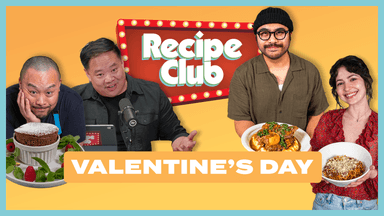 Romance is in the air at Recipe Club! David Chang, Nico de Leon, and Becky Joiner compete with recipes to love on Valentine’s Day. Dave makes a chocolate soufflé, Nico woos with an osso buco, and Becky brings the pasta sauce she makes with her husband for V-Day. Which dish will win our hearts?