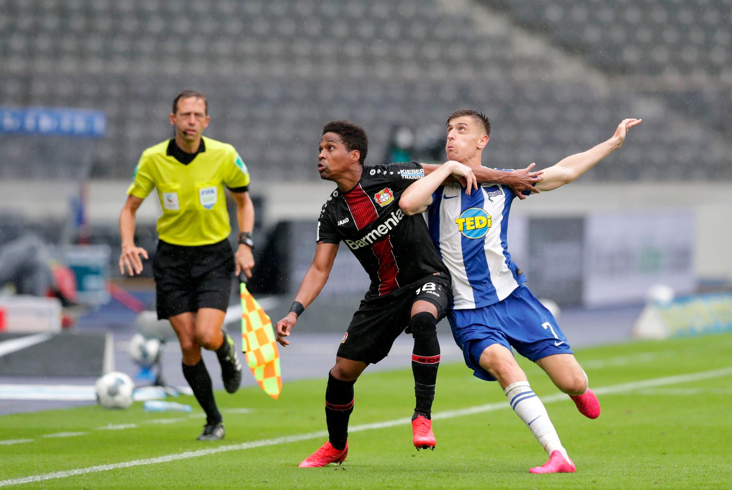 As for the game itself: There was a lot to play for, as Hertha looked to end a run of three straight defeats following a promising start under new coach Bruno Labbadia. Meanwhile, Leverkusen had Champions League qualification in their own hands, starting the day a point ahead of fifth-placed Borussia Mönchengladbach. The sound of the ball being struck and the shouts of the players and coaches echoed around the already cavernous Olympiastadion. There was something genuinely interesting in hearing the calls, switches in language, or referee Felix Brych walking over to Leverkusen coach Peter Bosz to tell him, “Next time, yellow card,” after the Dutchman complained once or twice too much.