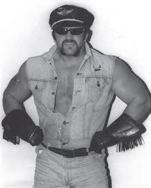 In Animal’s retelling, Ole, “a mountain of a man who reminded me of a rugged old lumberjack,” thought he and Rick Rude had good physiques and might be worth giving a trial run in Georgia. Ole had seen the second Mad Max film, which was released in the U.S. as The Road Warrior, and become enamored of the idea of the “Road Warrior” as a wrestling character—a vicious, take-no-prisoners, leather-clad biker from parts unknown. When Animal assumed the mantle, in the process becoming wrestling’s original Road Warrior, he outfitted himself in a manner reminiscent of a biker in any number of Tom of Finland illustrations: “little jean jacket vest, black leather gloves, sunglasses, jean shorts, and to top it all off, a Village People–style black police cap.” He whipped his first opponent, enhancement talent Randy Barber, in a matter of minutes, only to find himself shipped to Jim Crockett’s Charlotte territory shortly thereafter.