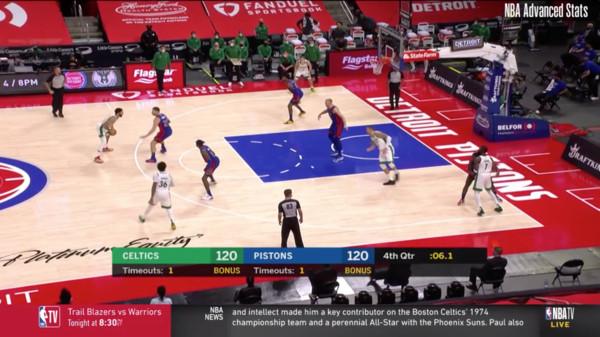 Look at the clock in both of those images: Griffin went from a decent position to the ground in 1.3 seconds. Naturally, Tatum sank the jumper to give Boston the win.