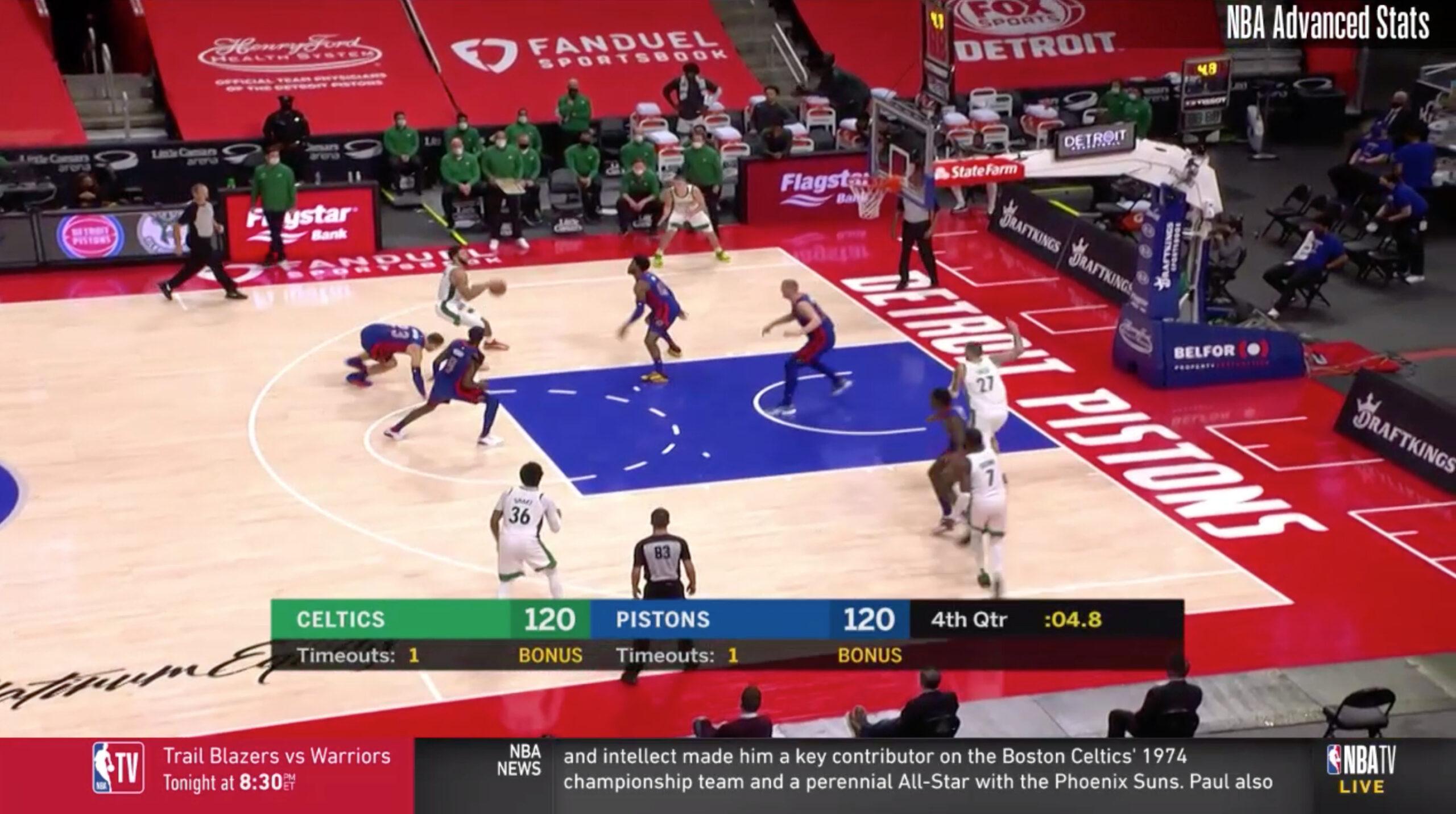 … quickly turned disastrous for Detroit, via a simple Jayson Tatum burst that sent Griffin stumbling to the floor.