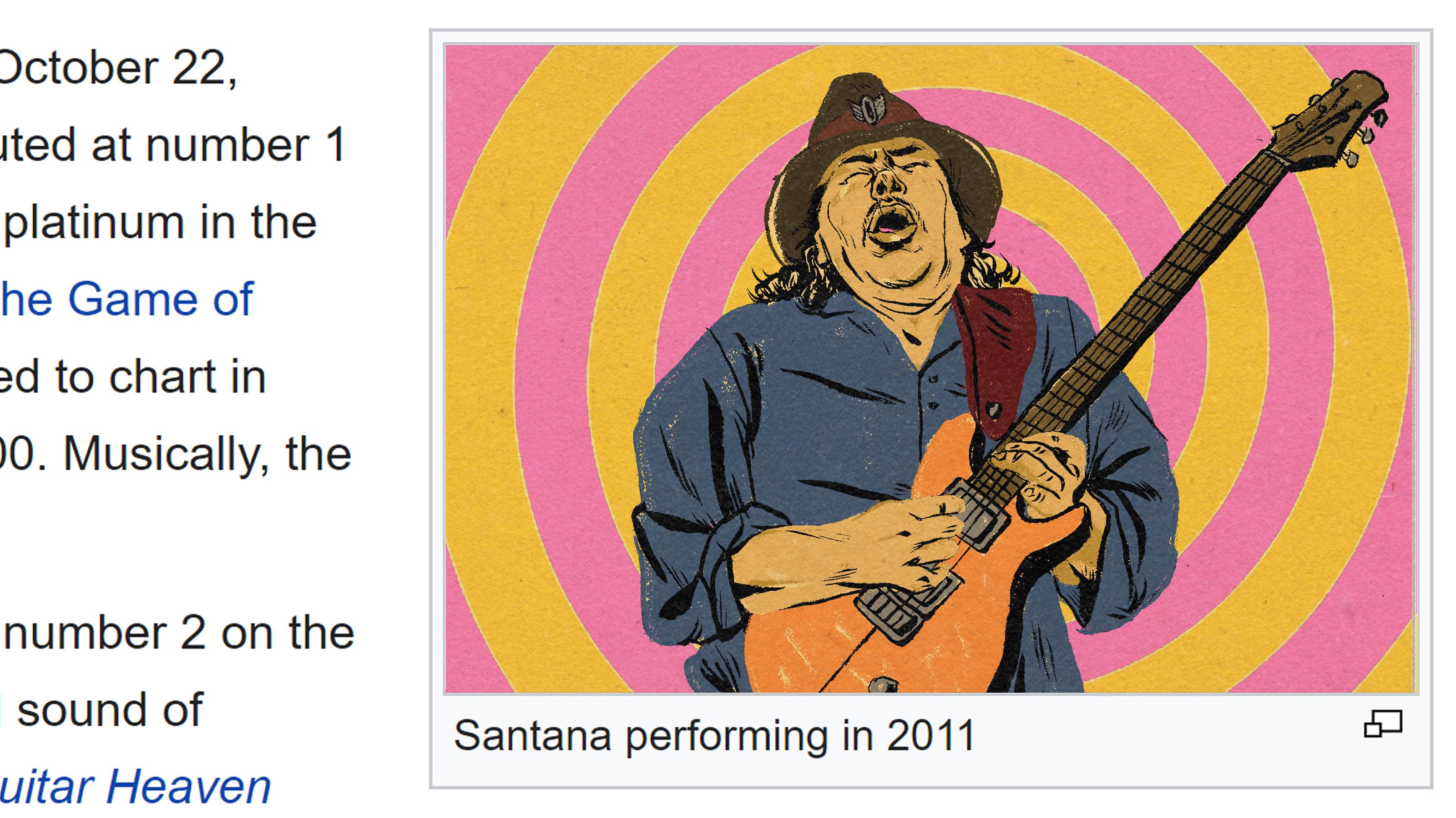 As a devotee of dad rock—or granddad rock, depending on one’s frame of reference—who listens to a lot of music made by bands that broke up long ago, I have a soft spot for zombie bands that outlived their life expectancy and continue to tour or record. I’m talking about gray-bearded bands that have soldiered on for decades despite departures and deaths, their ever-shifting formations often winnowed to one founding member (at most) who carries on their legacy and retains the legal rights to their name. These groups are like the Lazarus taxa of the entertainment industry, and it’s difficult to document their histories from original lineups to current incarnations. Fortunately, a fossil record exists: Industrious editors on Wikipedia have preserved some of their rosters and timelines in graphical form; the sprawling displays are something to behold. REO Speedwagon. Steppenwolf. The Temptations. The Beach Boys. The Flying Burrito Brothers. Earth, Wind & Fire. And maybe the most voluminous of all: a scrollable, color-coded roll call of the almost 70 past or present members of Santana, ranging from drummers or bassists who came and went in one year to the 55-year tenure of Carlos Santana himself. This is information, but it’s also art. Now I just need enough wall space to turn some of these suckers into framed prints and hang them in my home. —Ben Lindbergh