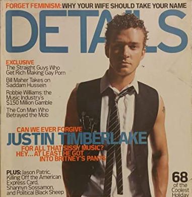 Boom: her relationship with Justin Timberlake, and their breakup, and his “Cry Me a River” video, and this irredeemably stupid Details magazine cover, which is overcompensating so violently it’s amazing it didn’t reverse the rotation of the earth.