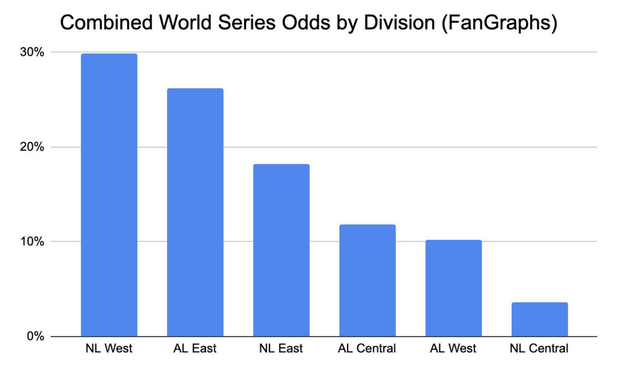 Of course, somebody from this motley crew has to make the playoffs. But given how poorly each individual roster projects, it’s hard to imagine the winner will do much in October: Combined, all five NL Central teams’ World Series odds total just 3.6 percent, per FanGraphs. No other division’s combined title odds are below 10 percent.