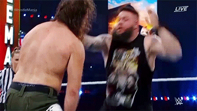 At WrestleMania on Sunday, Zayn manages to roll out of the ring to avoid the pin, and Owens immediately tries the pop-up powerbomb on the ring apron. That same fan will wince, remembering that it’s a symbol not just of Owens’s many betrayals, but of the specific betrayal that began his WWE career on his debut night, attacking his best friend. From Sami’s frenzied blows to Kevin’s head, it’s clear the memory isn’t far from his mind, either.