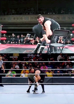 Now consider a person who happens to be focused on either Owens or Zayn’s characters specifically—the fan in the KO or SZ shirt in the audience, say. That fan will quickly understand the story: This is about two wrestlers with long indie careers tapping deep into their repertoire to win. The Sami Zayn connoisseur knows that Zayn has lost faith with his own wrestling over the past couple of years, even giving it up entirely for a while. This fan will note that as the match progresses and Zayn gets more frantic, he starts delivering a flurry of moves from deep in his arsenal to try to win the match. This fan will thrill to see his Blue Thunder Bomb, the move that has always symbolized Zayn’s confidence in himself, and will smile to see his serene certainty that this time it will beat his foe: