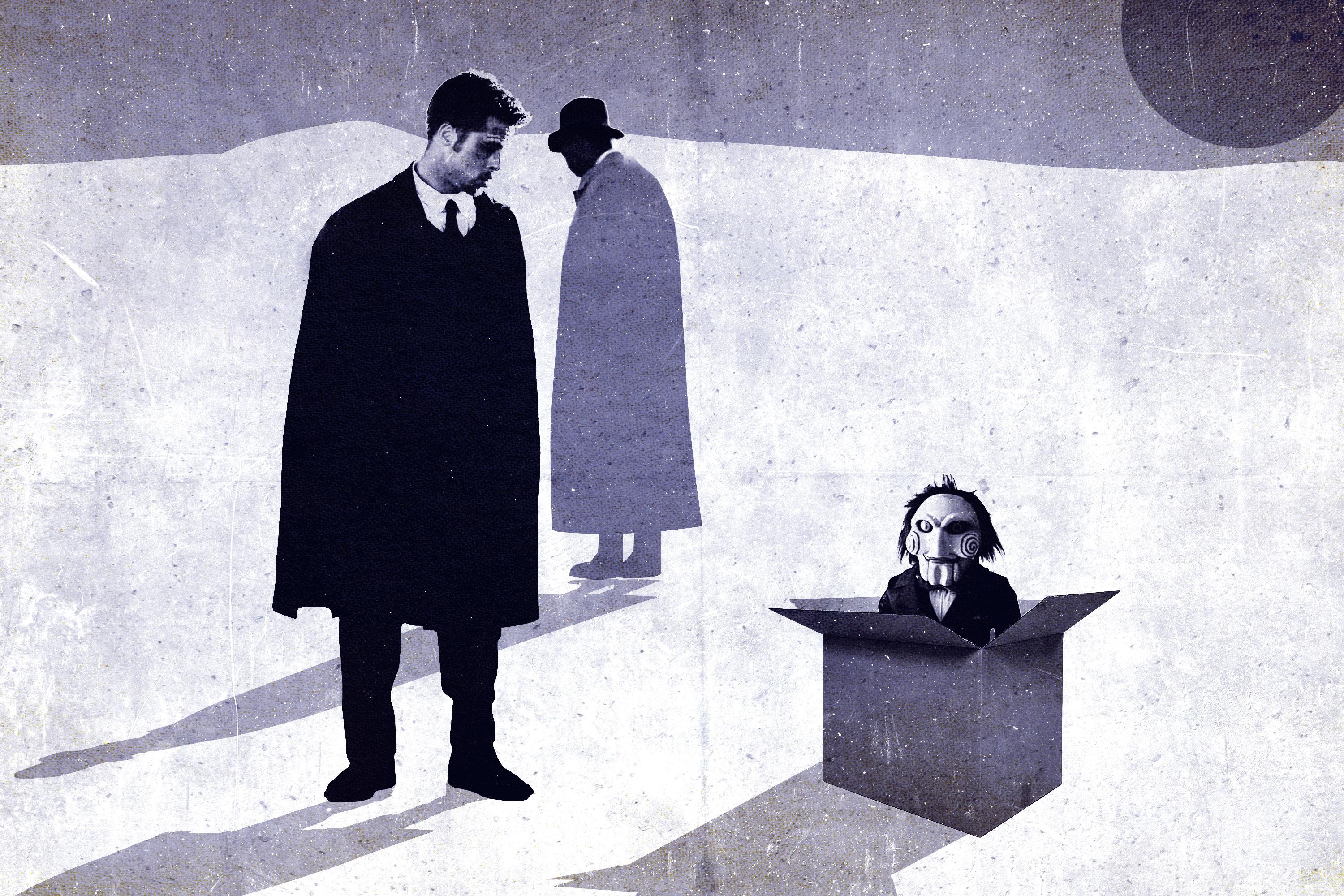 Spiral director Darren Lynn Bousman, who previously helmed three Saw sequels, has admitted the spinoff cribbed some from Fincher’s masterpiece, telling Empire that he and Rock envisioned a film that felt like Se7en while maintaining the franchise’s mythos. (By “mythos” I think Bousman mostly means “we still have the torture devices on deck.”) But Spiral’s similarities with Se7en isn’t such a major tonal shift that it’ll discombobulate audiences. If anything, the franchise could be considered one of the more successful—if not somewhat distant—descendants of Se7en. (Both feature depraved minds with twisted moral codes playing god to anyone they deem unworthy. I’m pretty sure John Doe and John Kramer would vibe.)