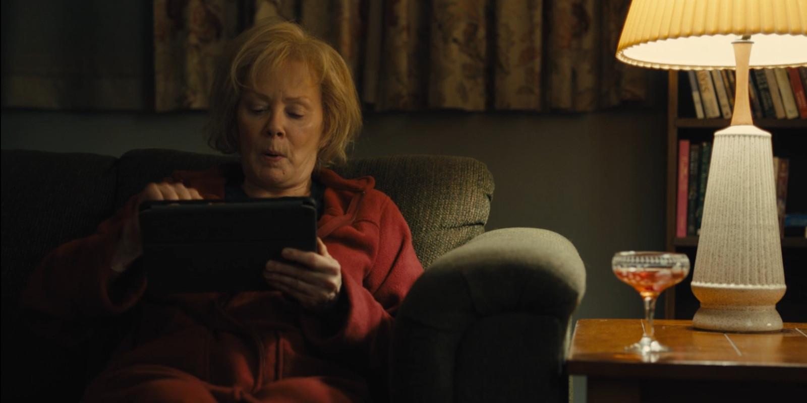 Not only is Jean Smart aggressively playing Fruit Ninja on an iPad with a Manhattan at her side one of the first perfect moments of Mare of Easttown, it’s also one of the most consistent. Because if Helen isn’t snacking, or going unappreciated for the work she puts in to keep the Sheehan family afloat, then she is slinging that index finger around on her iPad with the stealth and agility of a ninja going undercover as a tipsy grandma. It’s played less for laughs than the ice cream bit, and more just as something that this person does to enjoy her time once dinner is finished.
