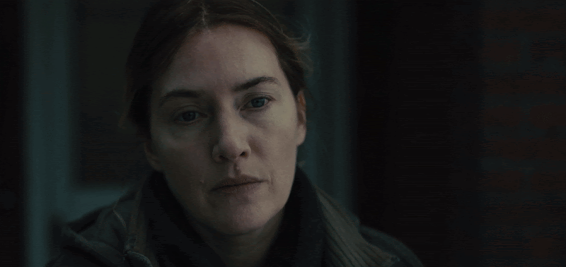 And Mare barely flinches. It’s almost like she knows it’s coming; like she knows exactly what it is and where it came from and who sent it from the moment it flew through the window, spraying glass all over her body; like she knows that stopping to get upset about it, or even stopping to clean it up won’t change the hard facts about what just happened. And it definitely won’t make her any less hungry. So, Mare shakes the glass off of her like a dog after a bath, picks up her hoagie, and takes a huge bite while milk and glass fall at her feet. And when Siobhan comes running in to see what the noise was, Mare simply tells her: “That was a scared, angry father.”