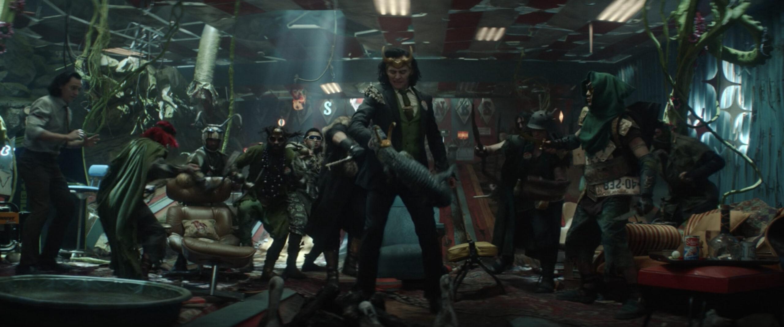 After the five Lokis trade stories and sip on some Roxxiwine (and Hi-C Ecto Cooler for the young one), Boastful Loki’s plan to betray Kid Loki brings President Loki and his own crew of trickster variants to Kid Loki’s hideout. Of course, President Loki (also played by Tom Hiddleston, having a bit of villainous fun) immediately double-crosses Boastful Loki, and then his own crew double-crosses him, leading to a wild scrum. “Animals!” Classic Loki yells after quickly escaping the battle with Loki, Kid Loki, and Gator Loki. “We lie and we cheat, we cut the throats of every person who trusts us, and for what? Power. Glorious power. Glorious purpose! We cannot change. We’re broken, every version of us. Forever.”