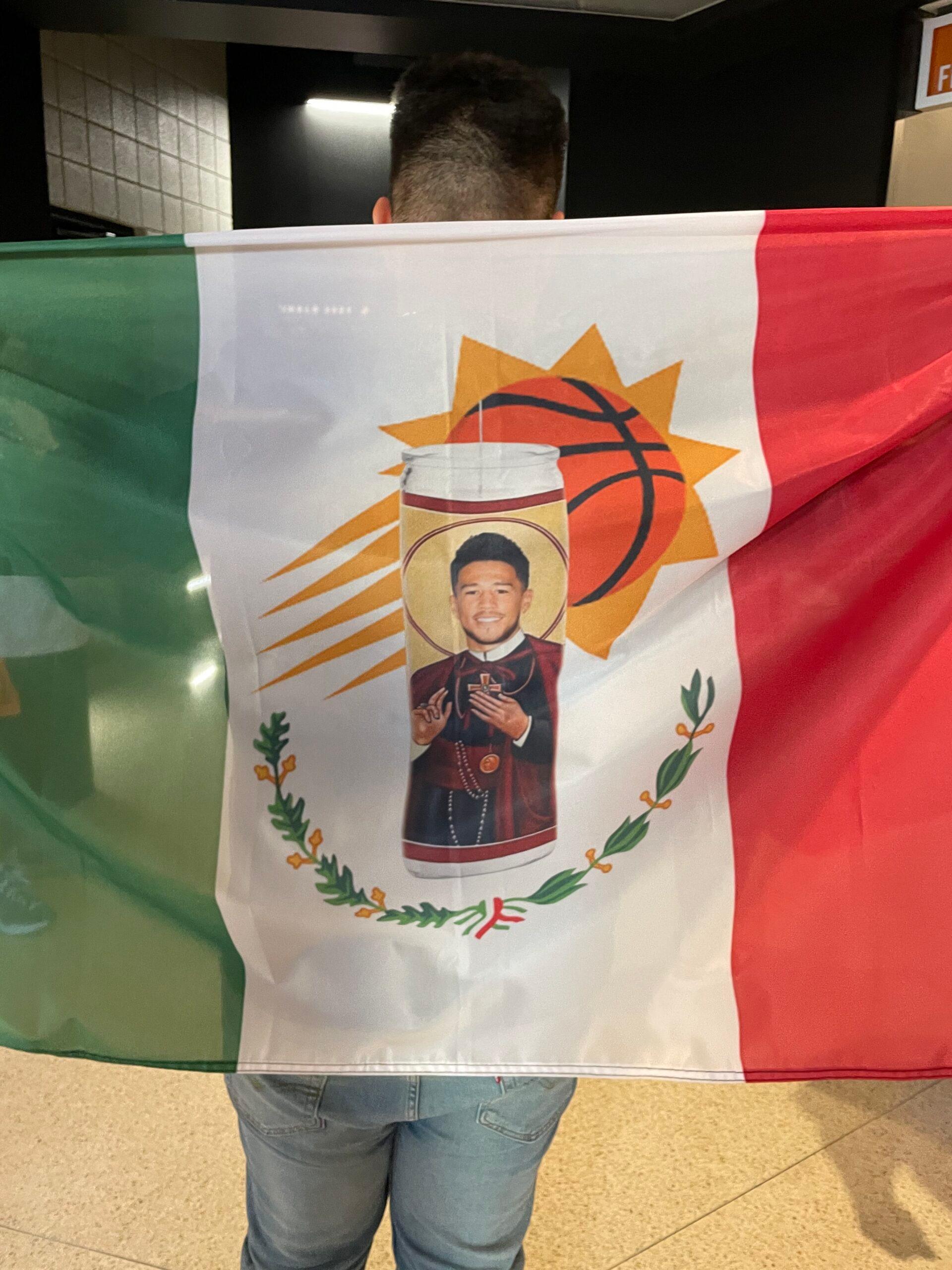 Isael Lugo didn’t get 20 feet inside Phoenix Suns Arena before he was stopped last week. The 24-year-old Lugo had the one of the most coveted pieces of memorabilia in the house: a custom-made Mexican flag with a Suns logo in place of the shield, and Booker’s face plastered on a prayer candle.