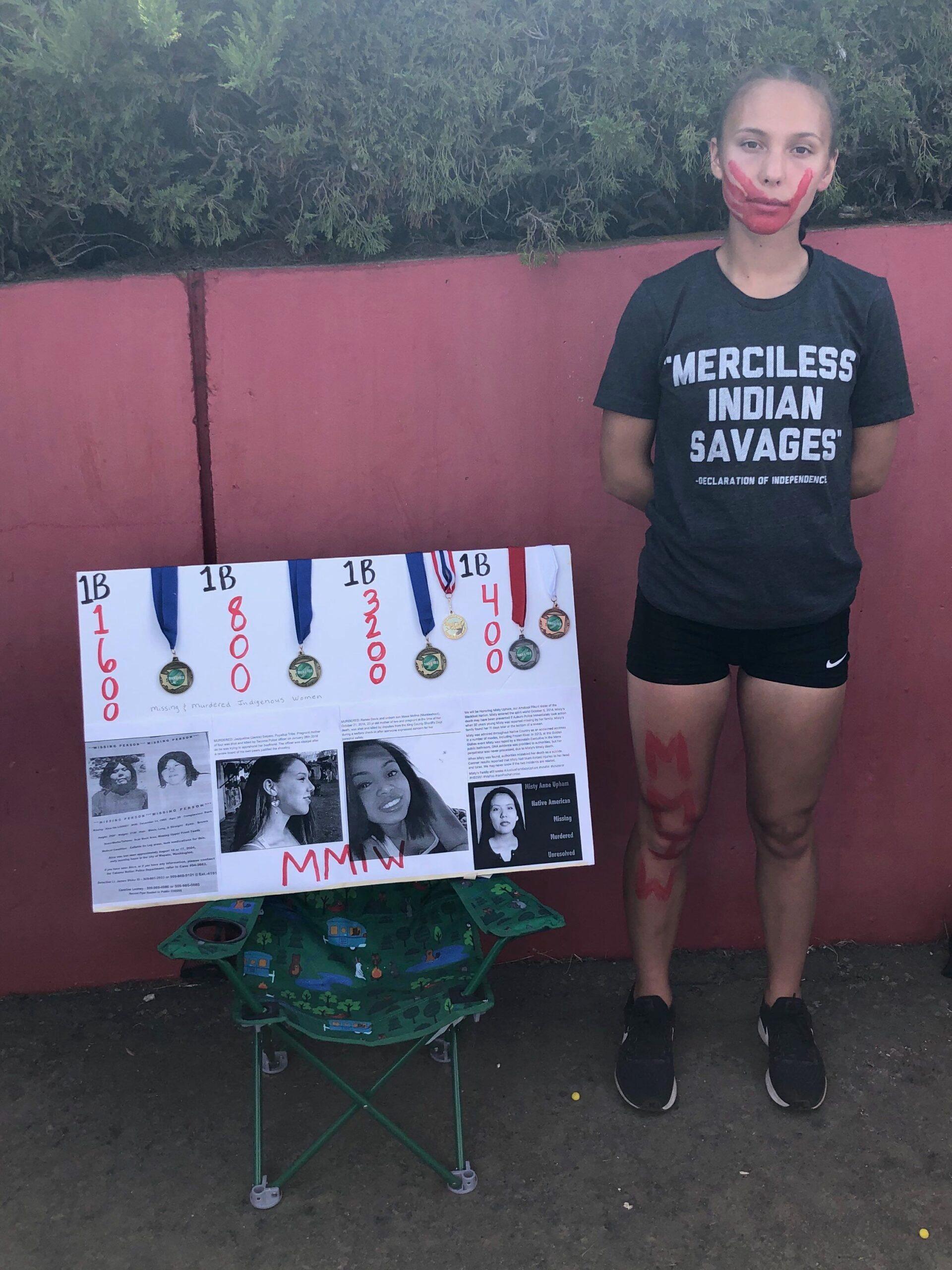 She runs to raise awareness for the Missing and Murdered Indigenous Women (MMIW) and Girls movement. Indigenous women on some reservations are murdered at a rate of more than 10 times the national average of other ethnicities, according to Department of Justice data from 2008. In the United States, murder is the third-leading cause of death among Native women.