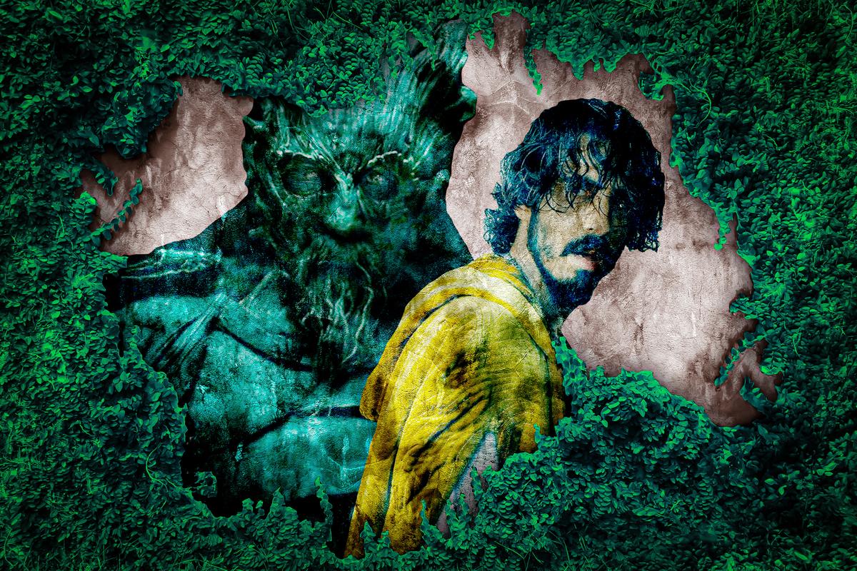 The Green Knight—David Lowery’s new medieval drama based on an Arthurian legend—features giants too. In an eerie, surreally stylized sequence, the dissolute would-be knight Gawain (Dev Patel) encounters a mountain-sized wanderer and asks whether he might hitch a ride on its shoulder in order to ease his journey. It’s a moment that pinpoints something in Gawain’s character as well as in Lowery’s: Where the striver onscreen searches lazily for shortcuts, the director is thinking big.