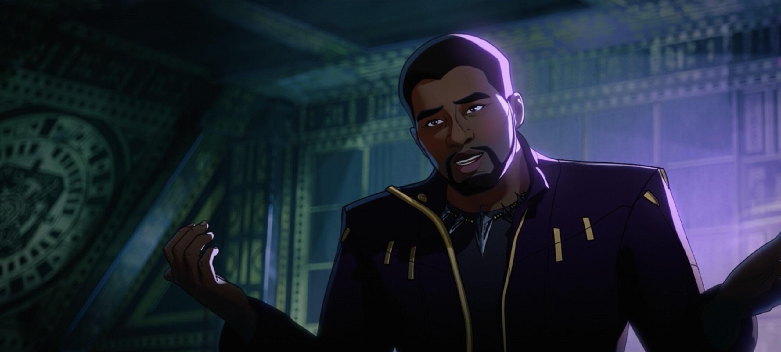 Beyond Boseman’s performance alone, the episode provides a blueprint for how the show can succeed moving forward. Unlike the series premiere, which limited itself within the storytelling confines of Captain America: The First Avenger, the second episode relies on only one familiar moment from Guardians of the Galaxy to kick off a narrative of its own. When Peter Quill (Chris Pratt) claims the ancient Orb in the opening minutes of the 2014 film, he introduces himself to Korath (Djimon Hounsou) under his self-given outlaw name, Star-Lord, expecting to strike fear in the Pursuer’s heart. But Korath—like much of the viewing audience—had never even heard of him. So when T’Challa’s path leads him to this same moment in the alternate universe introduced in What If…?, not only does Korath almost immediately recognize the Ravager as the legendary Star-Lord, he falls just short of dropping his gun and asking for his autograph. While the episode doesn’t linger on the beats of Guardians of the Galaxy, What If…? uses this reversal to show how different T’Challa’s journey has been from Quill’s up to this point, and how much more he was able to accomplish in the 20 years since he was abducted from Earth.