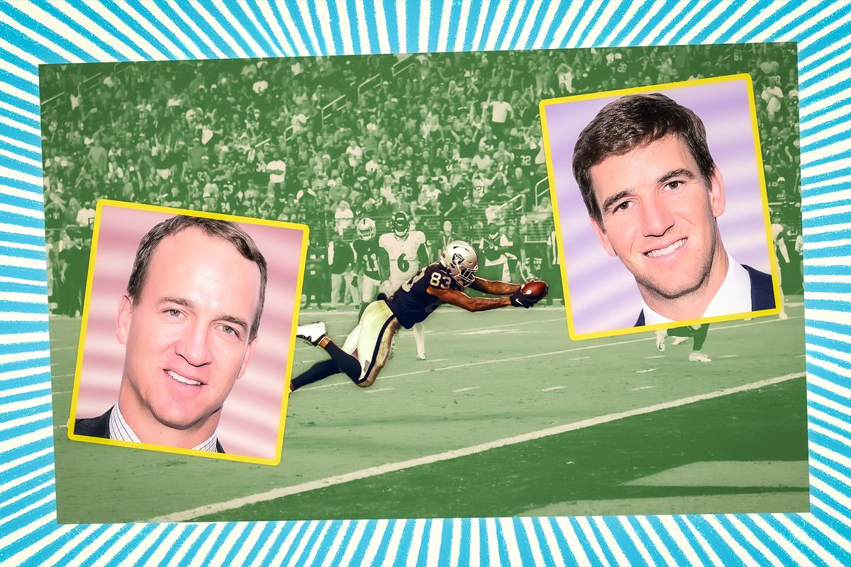 But as the game went on, the Mannings skipped the bits and just talked. The New York Post reports that by halftime, ESPN management told them to “focus more on football.” They broke down the defenses and explained what the quarterbacks might be thinking on various plays. They added recollections from their own careers—like the time Peyton tried to write an apology letter to a ref but couldn’t get his address because the NFL feared that he was seeking retribution for a call, or the surprising admission that “halftime adjustments” are essentially a myth since teams don’t actually have enough time to strategize in the relatively short breaks. They spent an extended period of time making fun of Kyle Boller, which might have been the most entertaining part of an entertaining evening. It probably wasn’t the best way to watch a football game for fans of one of the teams—the Mannings sometimes got so excited breaking down a particular play that they skipped over live game action—but it was fun to watch a game with them. It had the closeness and casual feel of a Twitch stream, except the two streamers were two of the most famous football men alive.
