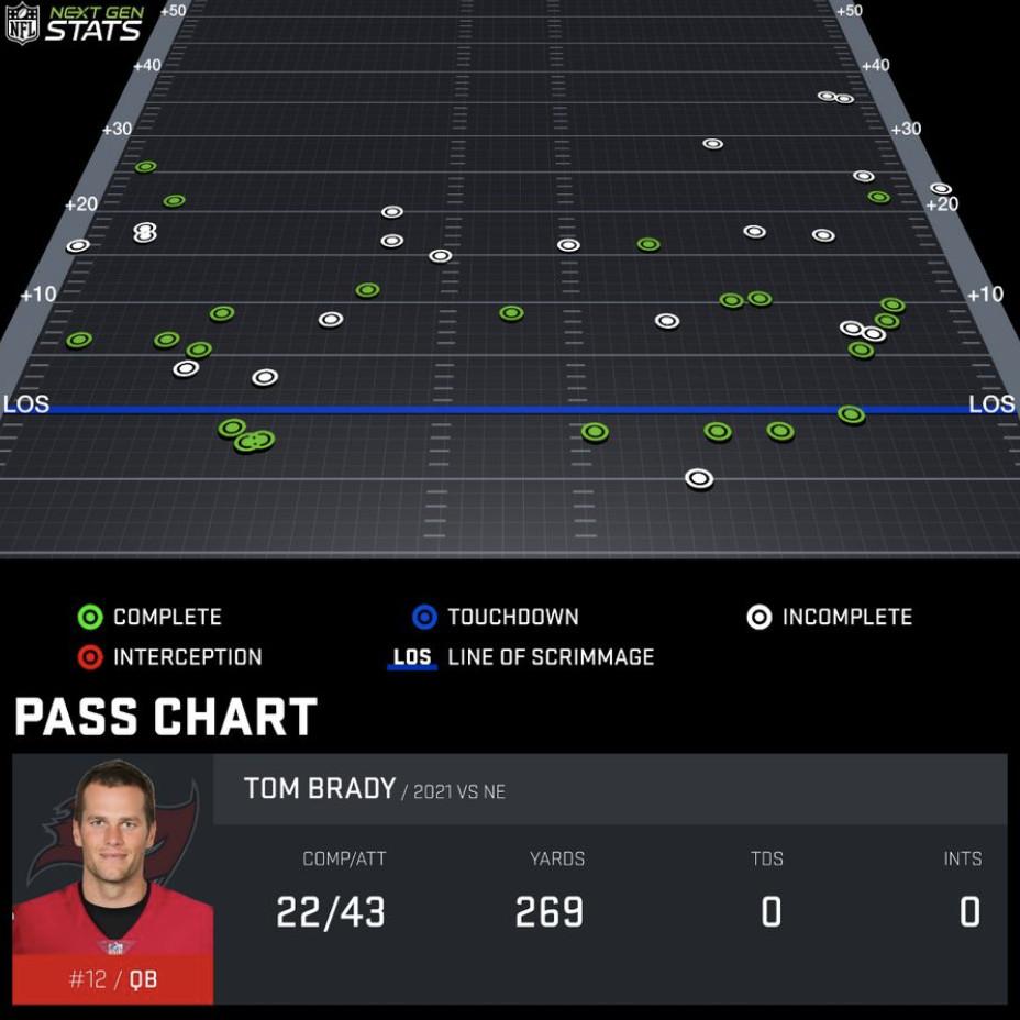 Brady led the Buccaneers to a 19-17 win that will earn him bragging rights over his former coach for another year, but it was hardly an impressive physical showing for the 44-year-old. He averaged 6.3 yards per attempt and failed to throw a touchdown for only the 15th time in the past decade. It was also just the third time since Brady joined the Bucs last season that the team failed to score at least 20 points.