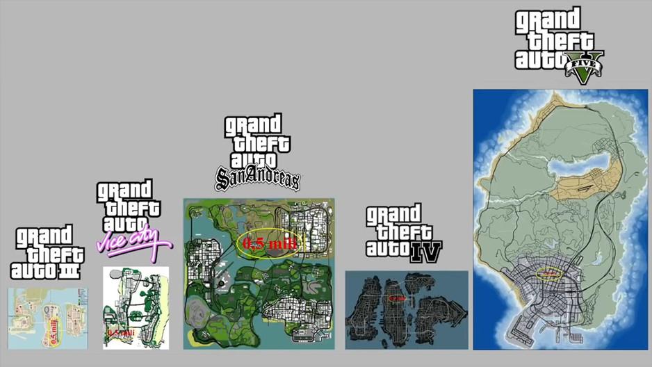 GTA III’s world feels huge, even by current standards. Liberty City’s three distinct neighborhoods give the game a scope that can be intimidating at times, considering its limited map function. (The map can’t be expanded beyond the tiny corner of the screen that it occupies.) GTA III’s version of Liberty City is technically the smallest of the open-world areas in the series (see image below), but it’s still big enough that I found myself spending hours just running around, stealing cars, doing stunts, seeing what I could climb, and blowing things up. (You know, GTA stuff.) And while I wouldn’t necessarily criticize GTA III’s more expensive sequels for being too big or long, there is something refreshing about being able to finish the story of a game in 20 hours or so, while also feeling like the boundaries are big enough to encompass hours of extracurriculars.