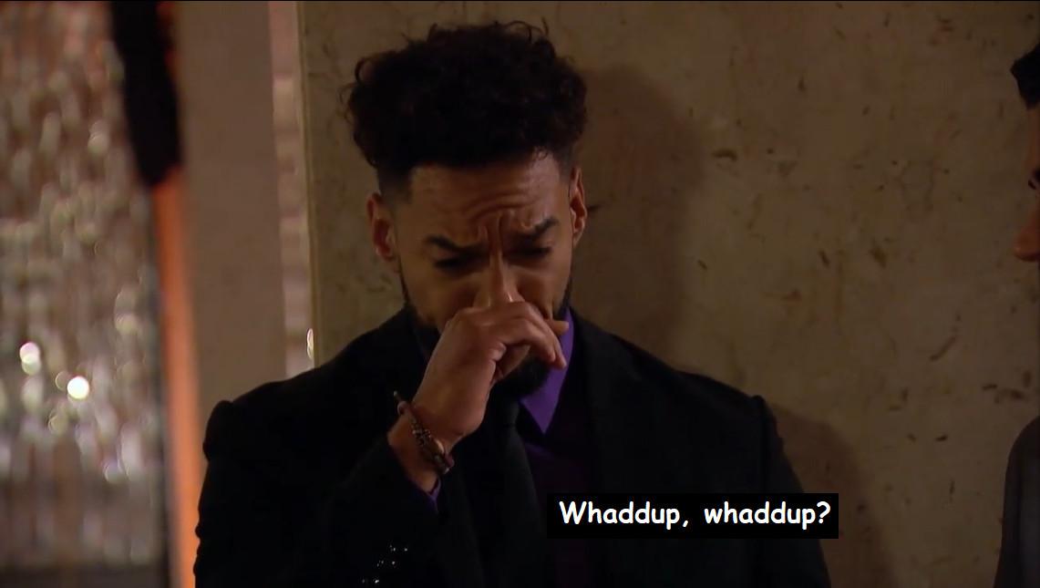 Considering that, they actually do a really nice job—especially Brandon J., who ultimately gets the group date rose. And when Michelle gets up on stage and closes us out with the live version of the “Hey soulmate, if you’re listening” voiceover we’ve been hearing in the season trailer for months, it feels like when you hear someone say the title of the movie in the movie.