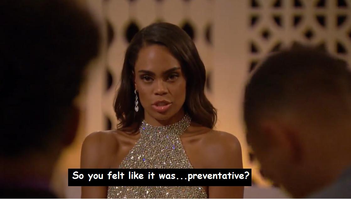 And as a result, having already done her Bachelorette duty to keep Peter around for one more episode, Michelle sends his ass packing during the rose ceremony without even making him and Will sort through their differences. Some children just don’t get along and need to be separated—and if that means sending home the guy who looks like he’d be the villain in a Pixar movie about a rat following his dreams of becoming an Italian chef in a definitively rat-averse industry … well then, that’s what it means.