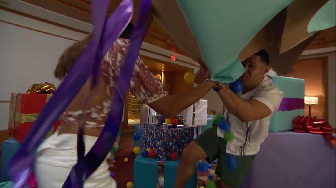 And herein lies the intrinsic struggle of watching The Bachelorette. We shouldn’t expect the babies not to eat the fruit snacks, just as we shouldn’t expect a group of hot men not to almost immediately begin screaming about respect and throwing each other’s belongings in the pool in this situation. It is a tale as old as time (or at least as old as The Bachelor), just the way we like it. We want to see these men hit each other with sticks because their co-girlfriend told them they had to in order to prove their love; we want to see them then get mad when they get hit a little too hard; we want to see them start metaphorically stuffing as many metaphorical fruit snacks into their mouths as humanly possible. But we also want them to then be able to defy human nature and nip the drama in the bud when we become bored with it.
