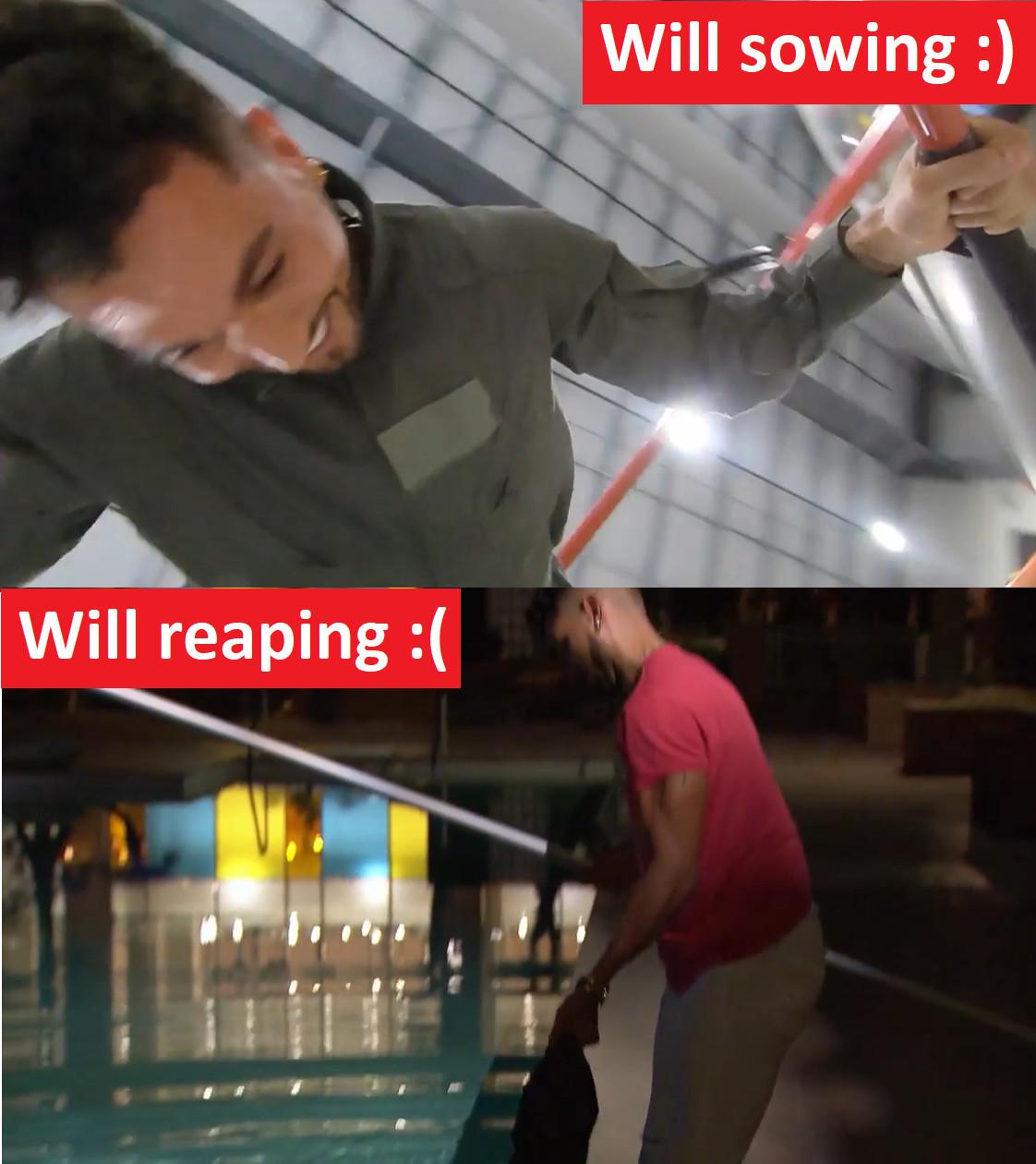 Nayte tries to placate Will by telling him that if he can just stay calm and not react, he will “forever be regarded as the bigger man.” Which is incredible advice in this setting, when a national audience can actually watch Will get very upset, cry out, “This man is really pushin’ my buttons!” and then ultimately decide to let it go and not say anything to Michelle, allowing her to end the night with a little monologue about how great all her co-boyfriends are while Will sadly fishes his waterlogged jacket out of a pool at the Renaissance Esmeralda Resort & Spa at Indian Wells.