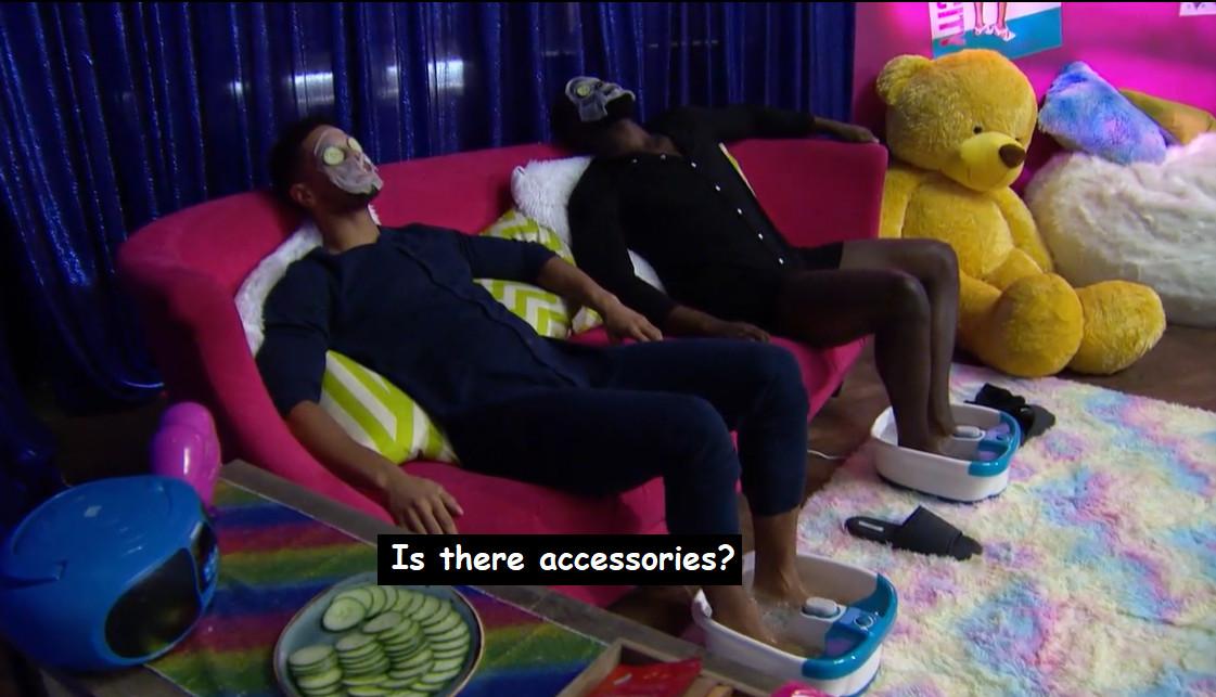 When the boys arrive to the date, they find snacks, games, spa stations, and an off-brand Build-a-Bear workshop for giant bears—and they absolutely lose it. Michelle arrives in a cozy Skims set (obviously) and none of these knuckleheads even blink. Michelle accidentally created a Disney World for Bros, and they’re far too interested in using their Fast Pass to platonic beanbag-spoon with their boys to pull their girlfriend aside and make sure she’s enjoying the date too.