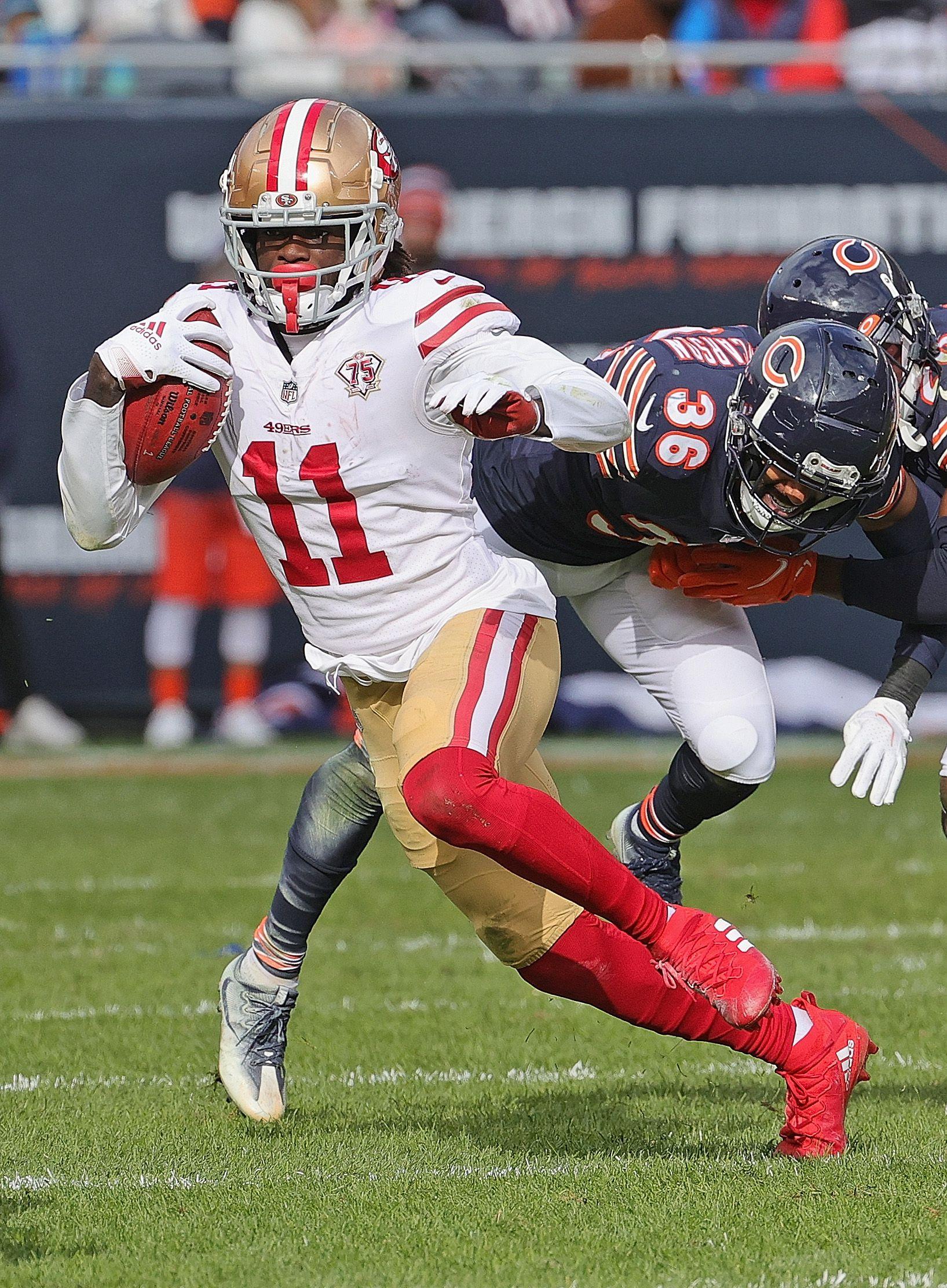 There’s nothing inherently wrong with that coaching approach, though it’s rare to hear it said so plainly about a highly drafted player only 1.5 seasons into his career. It would reflect the story of wide receiver Brandon Aiyuk, a first-round draft pick for whom the 49ers once again traded up. Aiyuk had a promising stretch during his rookie season, but to start the 2021 season, he was nowhere to be seen on offense. Shanahan insisted he’d just been beaten out by veteran acquisition Trent Sherfield in camp, and that a hamstring injury was holding him back. But Aiyuk had been a full participant in practice in the week leading up to the season opener. The second-year wideout is back in the rotation and has enjoyed two strong weeks, noting last week that he and Shanahan had “some words” that helped him get back on track.