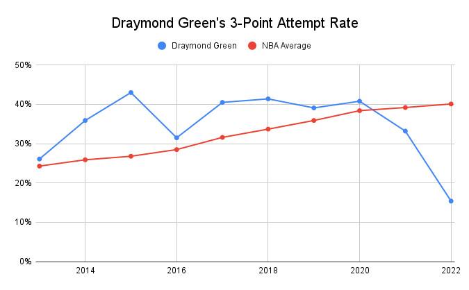 Green’s newfound 3-point avoidance isn’t all strategic; it’s psychological, too. “I think when you go so long without shooting, it’s a mental hurdle you have to get over. I’ll say that’s where I am,” Green told The Athletic’s Anthony Slater earlier this month. (He then added, in typical Green fashion, “But I can shoot the shit out the ball. I know that.”)