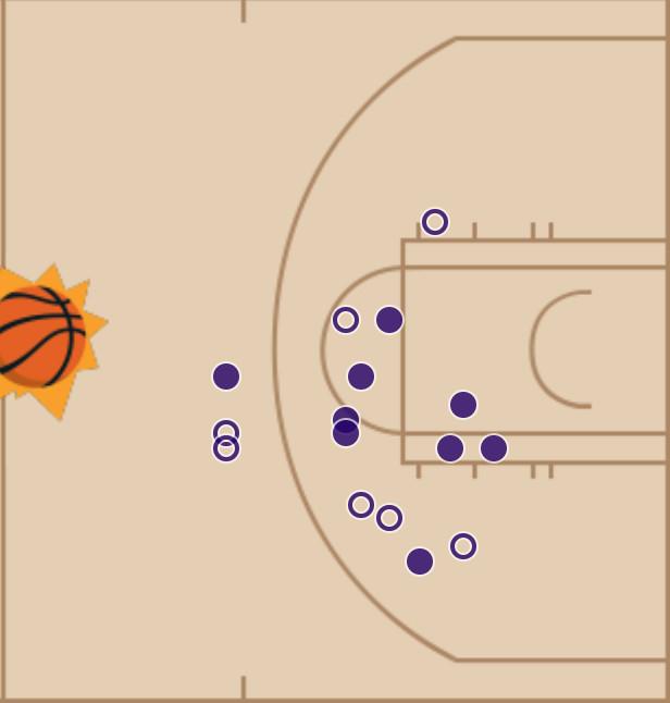 Yet one glaring weak point stands out in his profile. See if you can find it, using his shot chart from Phoenix’s 119-109 win against Portland on Wednesday as a clue: