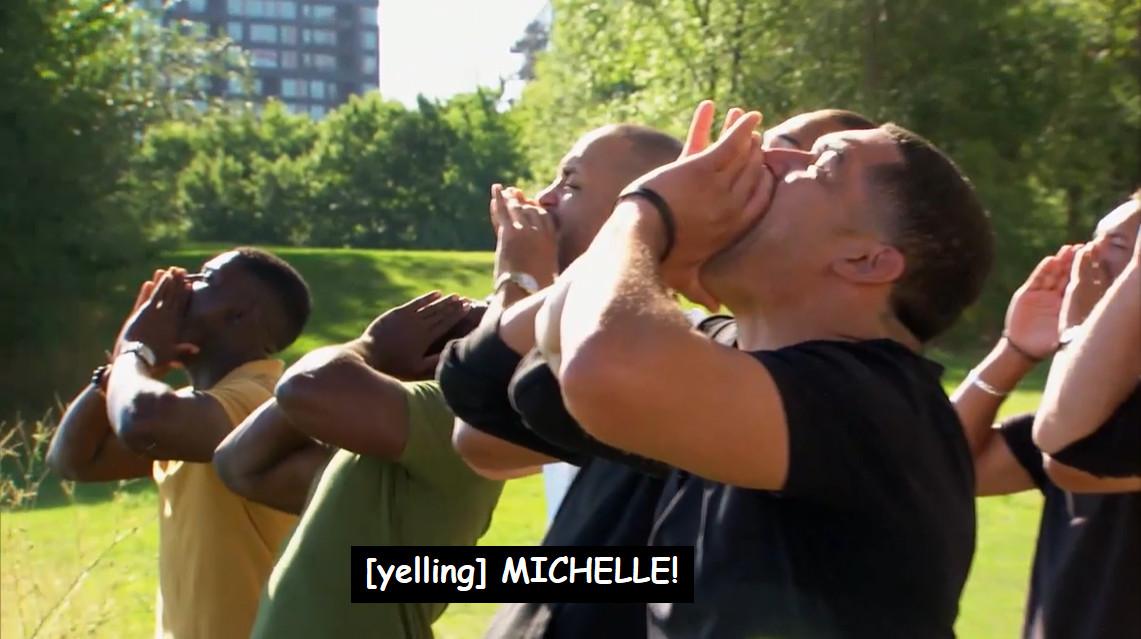 The feelings in this season—both for Michelle and from Michelle—have grown so serious and so fast that it seems necessary to start thinking through some logistics. Are Nayte and his full décolletage of tattoos going to move from Austin to a Twin Cities suburb? Is he going to get a precious pair of chunky-leather dad sandals like Michelle’s own father? Is Rodney? Is Rick? (Brandon absolutely would—pick Brandon, Michelle!!!) Having two partners who are both close with their families is all well and good until you have to start splitting up Thanksgivings, you know? And I don’t want Michelle to find herself in a Grocery Store Joe scenario where she suddenly realizes that nobody intends on moving to make this relationship work and is forced to mope around Bachelor in Paradise until a gorgeous 23-year-old takes pity on her soul.